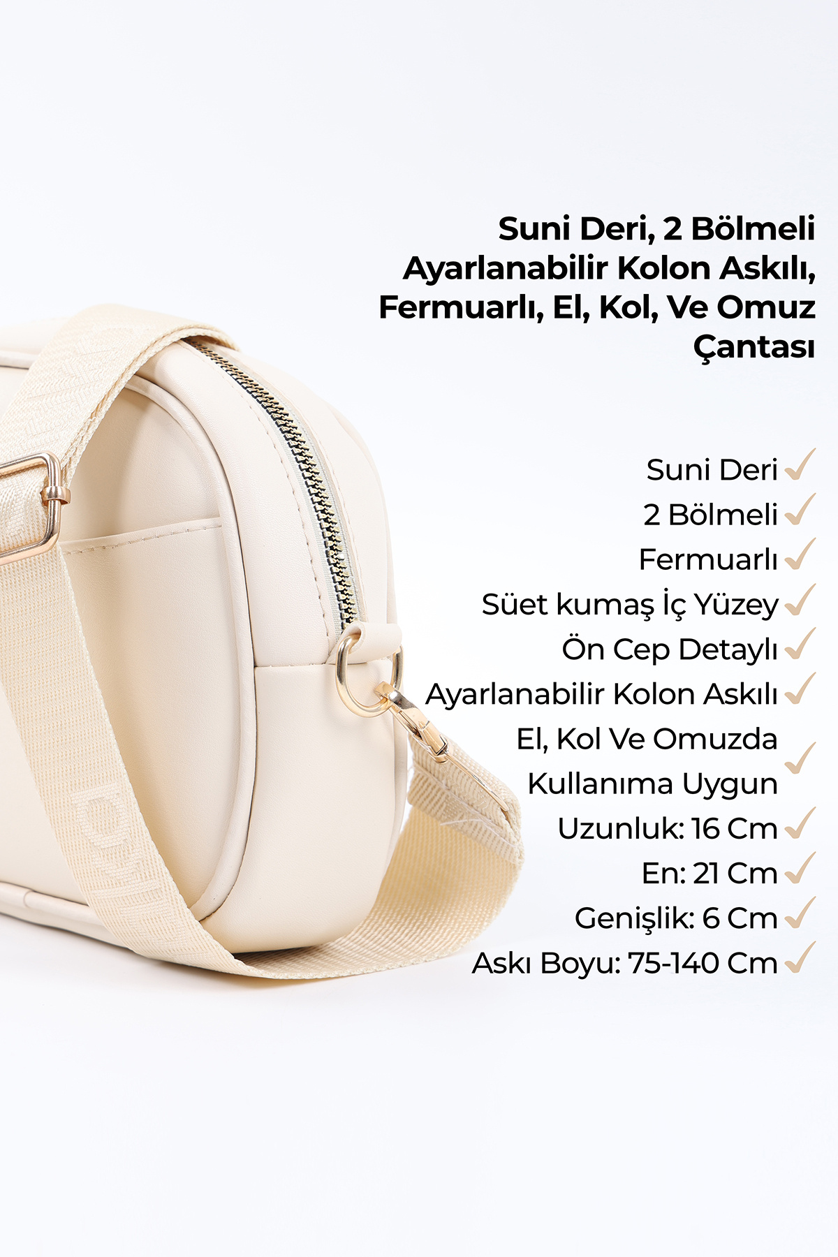 Krem SHK194 Suni Deri Fermuarlı 2 Bölmeli Ayarlanabilir Kolon Askılı Omuz Çantası Krem SHK194 Suni Deri Fermuarlı 2 Bölmeli Ayarlanabilir Kolon Askılı Omuz Çantası S225-00234 تک سایز