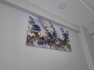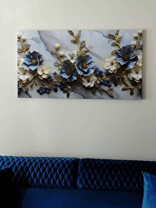 Mavi Beyaz Çiçekler Tek Parça Kanvas - Canvas Tablo Mavi Beyaz Çiçekler Tek Parça Kanvas - Canvas Tablo EV-KNVS-382 140 x 90
