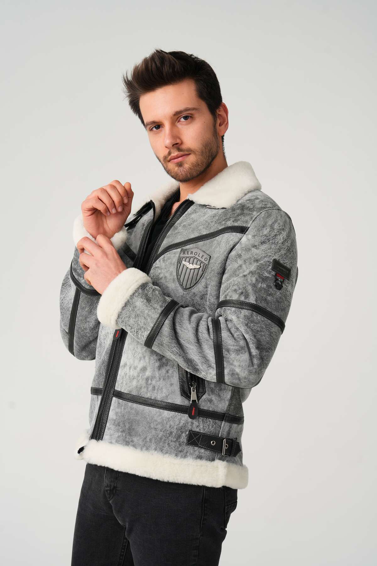 Erkek Gri Napa Hakiki Deri Mont Erkek Gri Napa Hakiki Deri Mont 1100 2XL