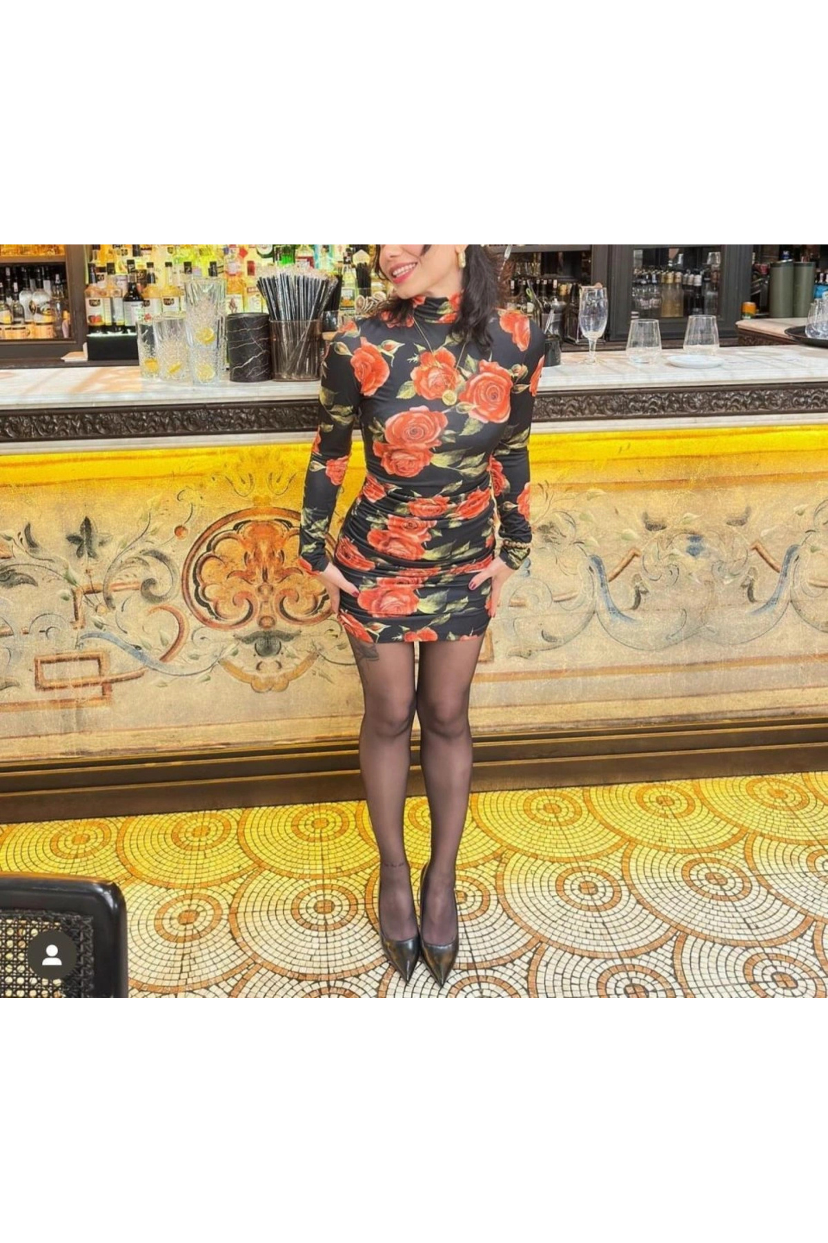 Kadın Balıkçı Yaka Gül Baskılı Fırsat ürün Mini Elbise Kadın Balıkçı Yaka Gül Baskılı Fırsat ürün Mini Elbise TXB41F9BAE20410 XL