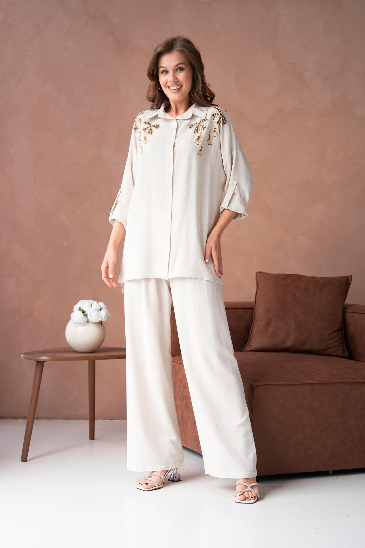 NAKIŞ İŞLEMELİ TAŞLI KETEN TAKIM NAKIŞ İŞLEMELİ TAŞLI KETEN TAKIM 117348 XL