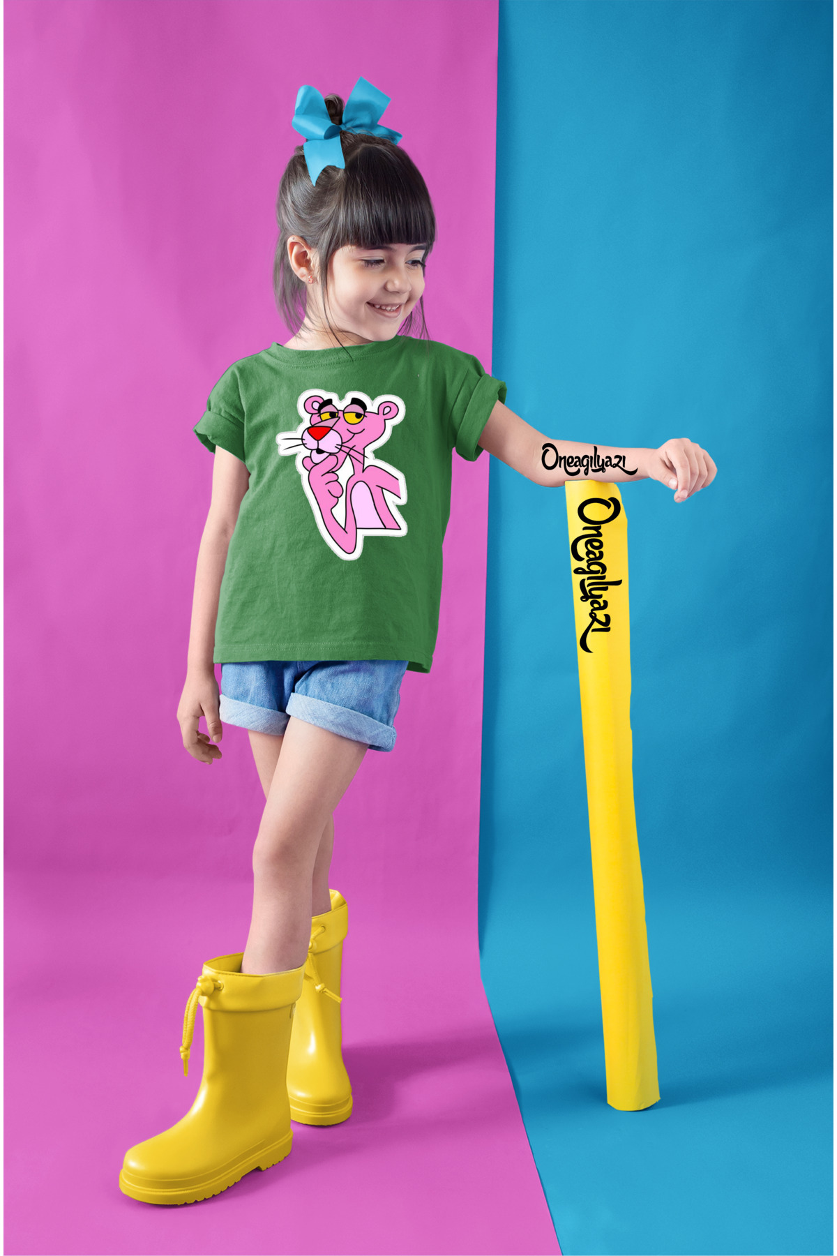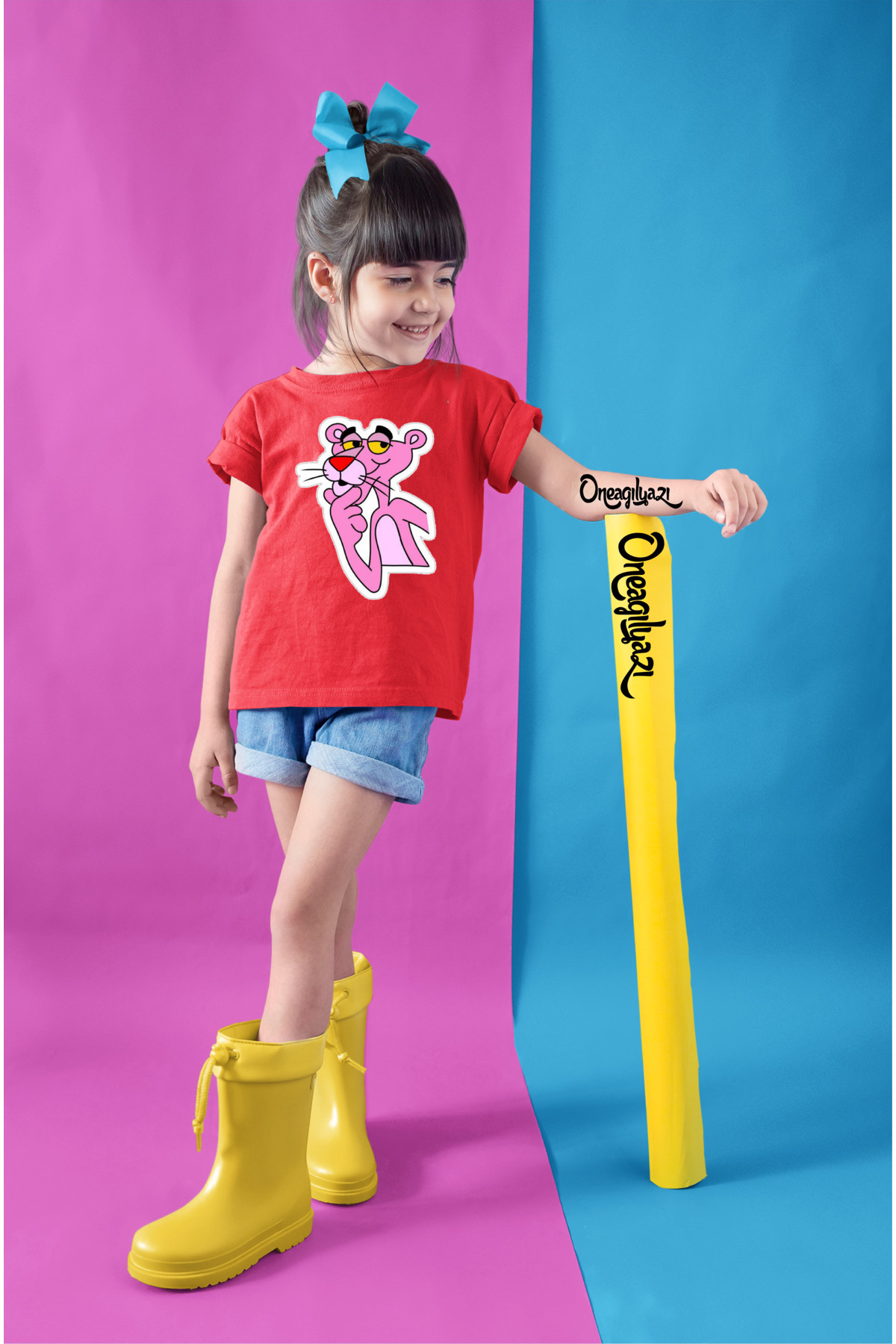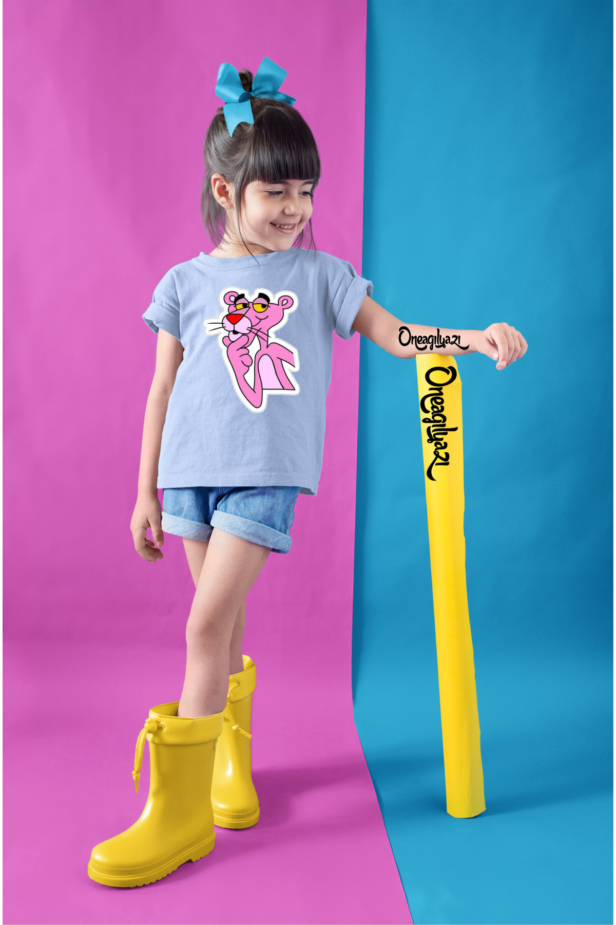 Pembe Panter Baskılı Kız Çocuk Oversize T-ShirT Pembe Panter Baskılı Kız Çocuk Oversize T-ShirT trendtsrt097