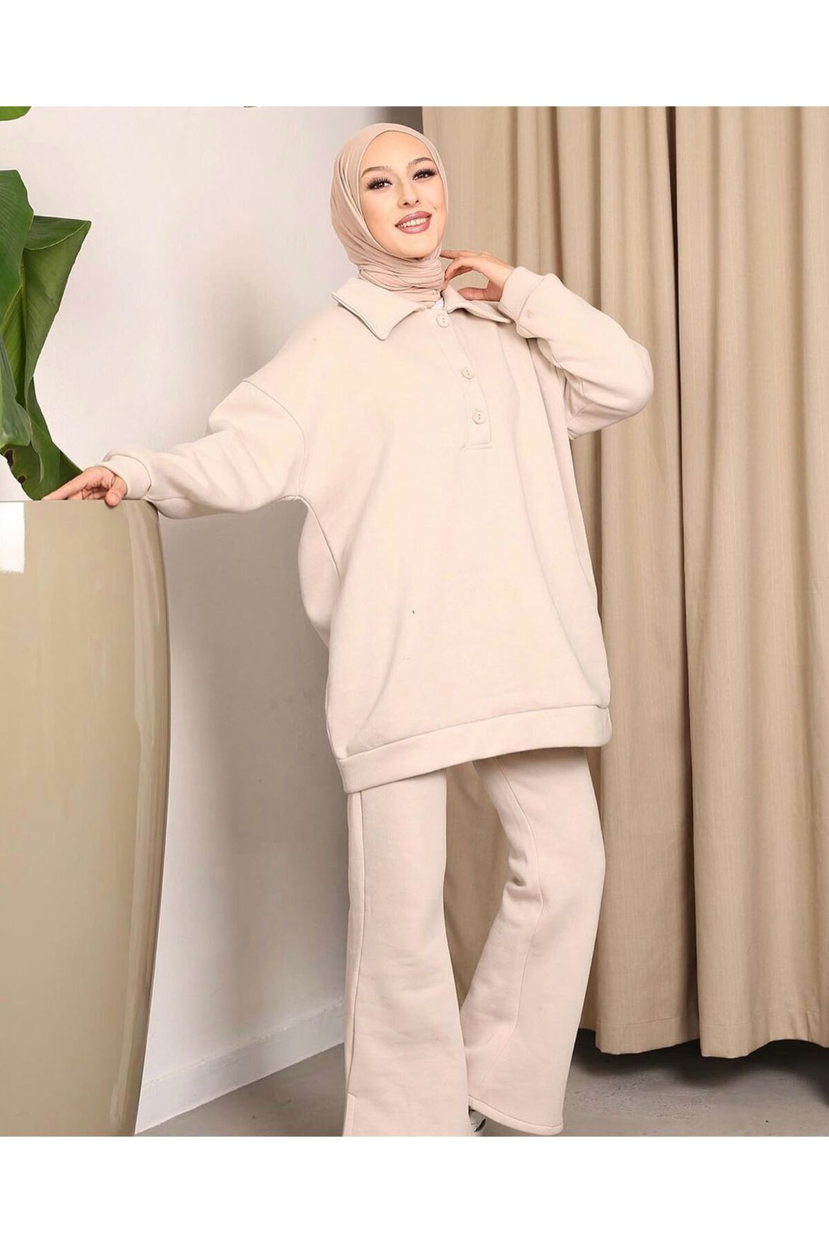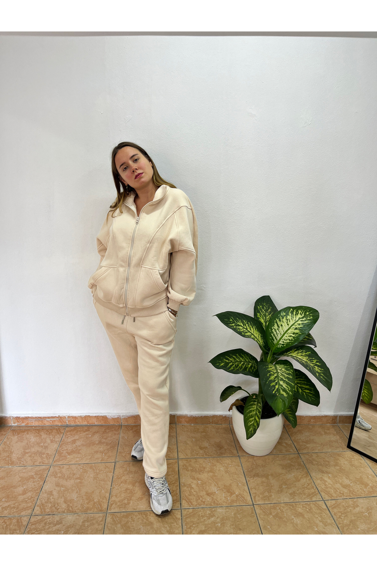 Krem rengi Oversize Eşofman Takım Krem rengi Oversize Eşofman Takım 1713 L
