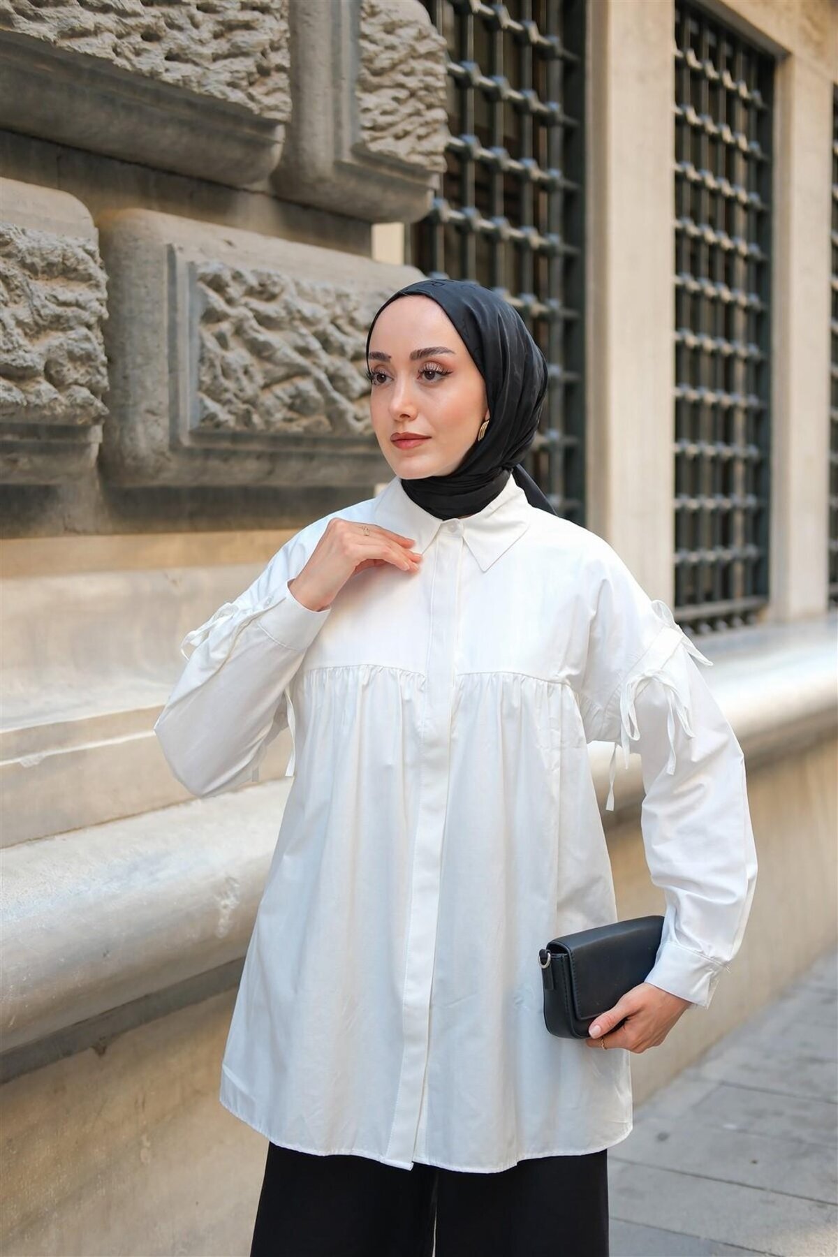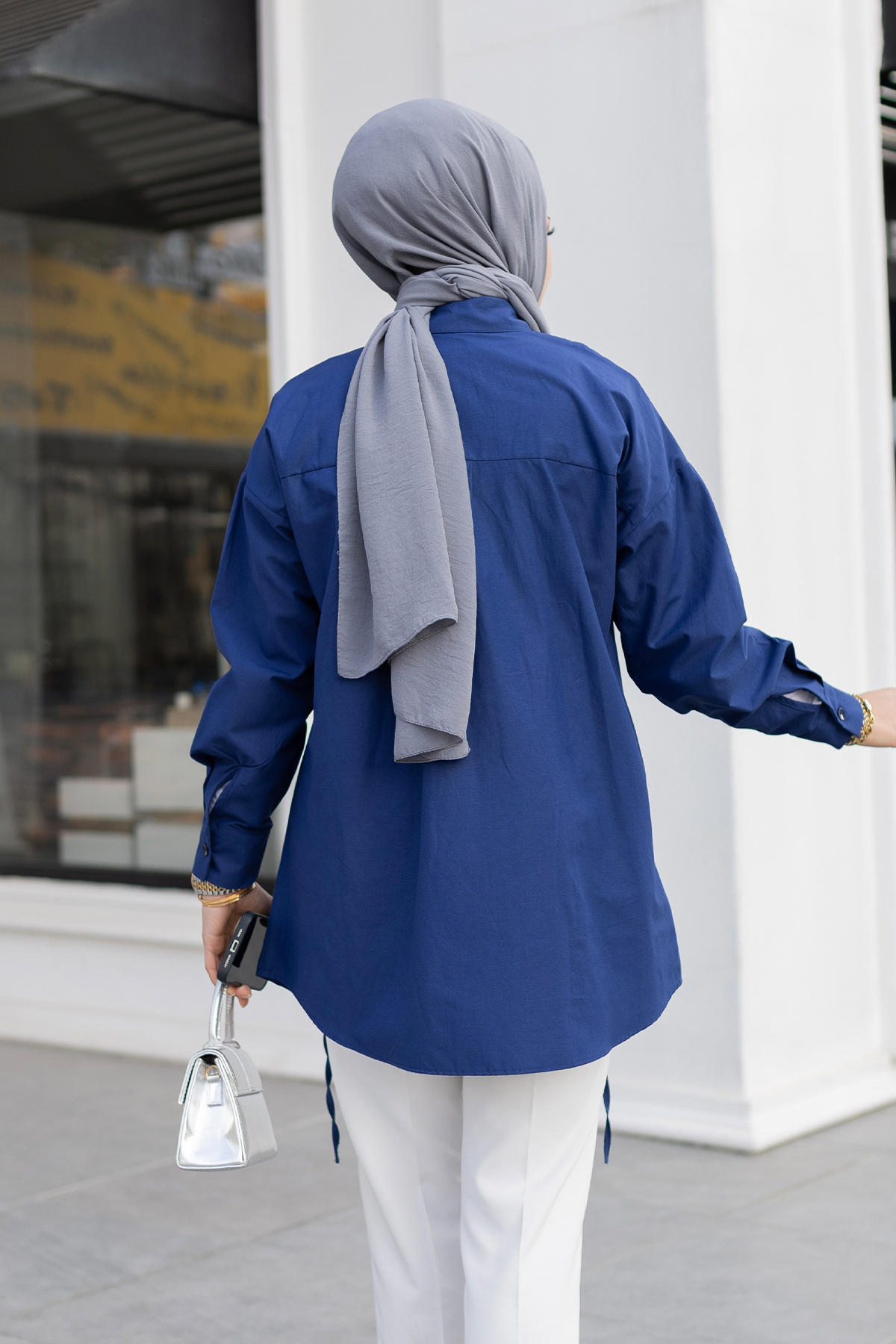 Kadın İp Detaylı Yırtmaçlı Gömlek Lacivert Kadın İp Detaylı Yırtmaçlı Gömlek Lacivert 182-0152 L/XL