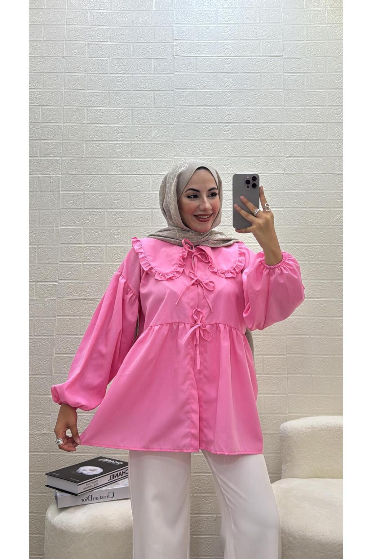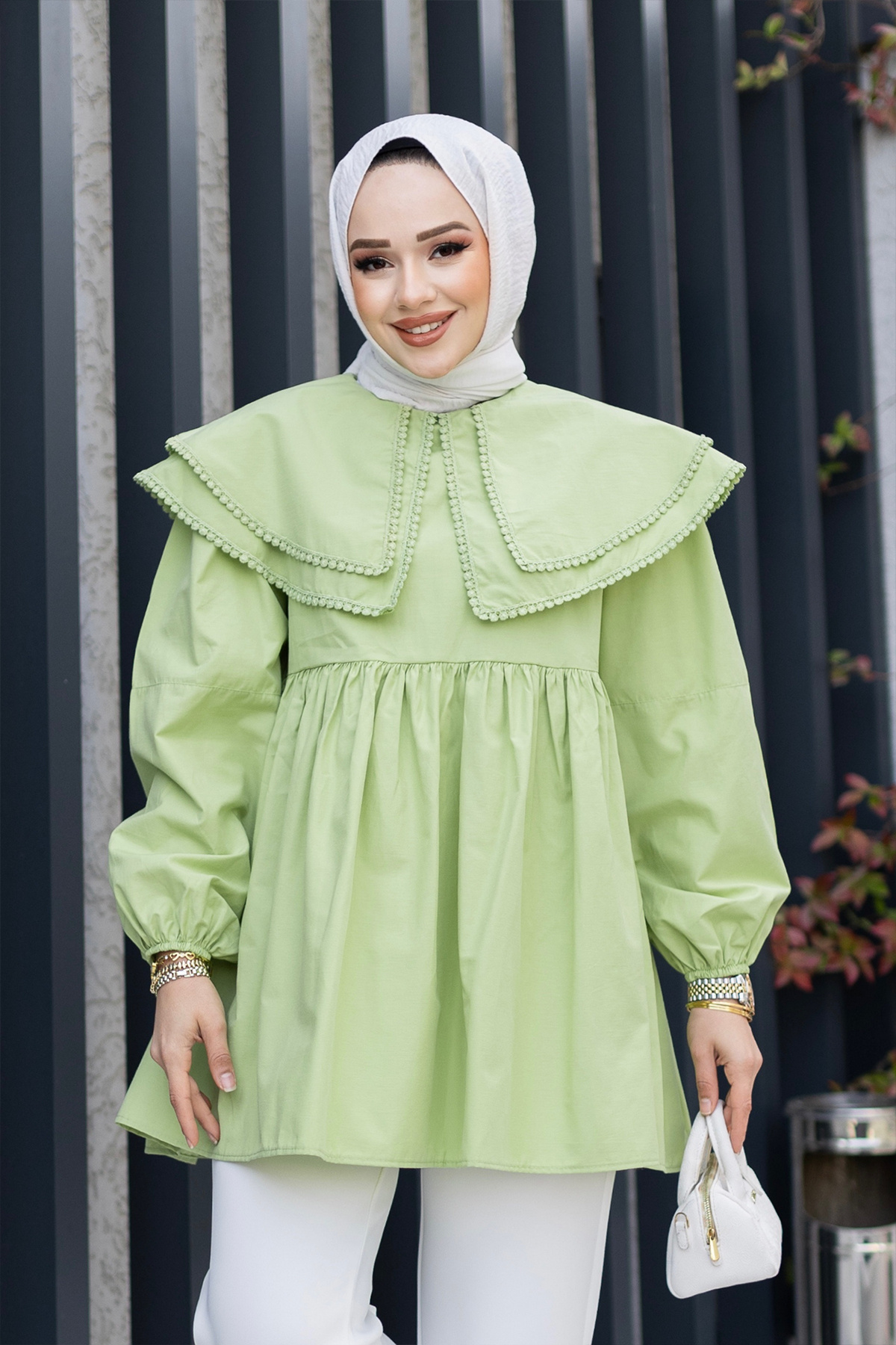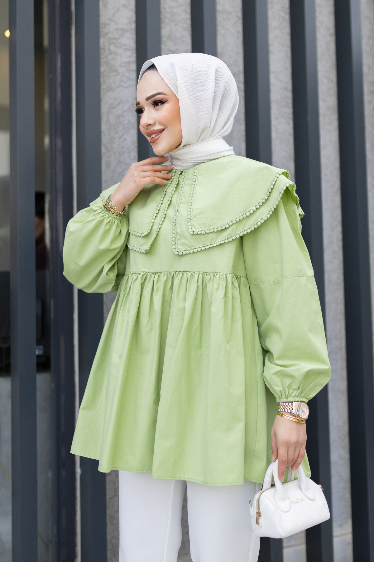 Kadın Çift Yaka Gupurlu Gömlek Fıstık Yeşil Kadın Çift Yaka Gupurlu Gömlek Fıstık Yeşil 182-0052 L/XL