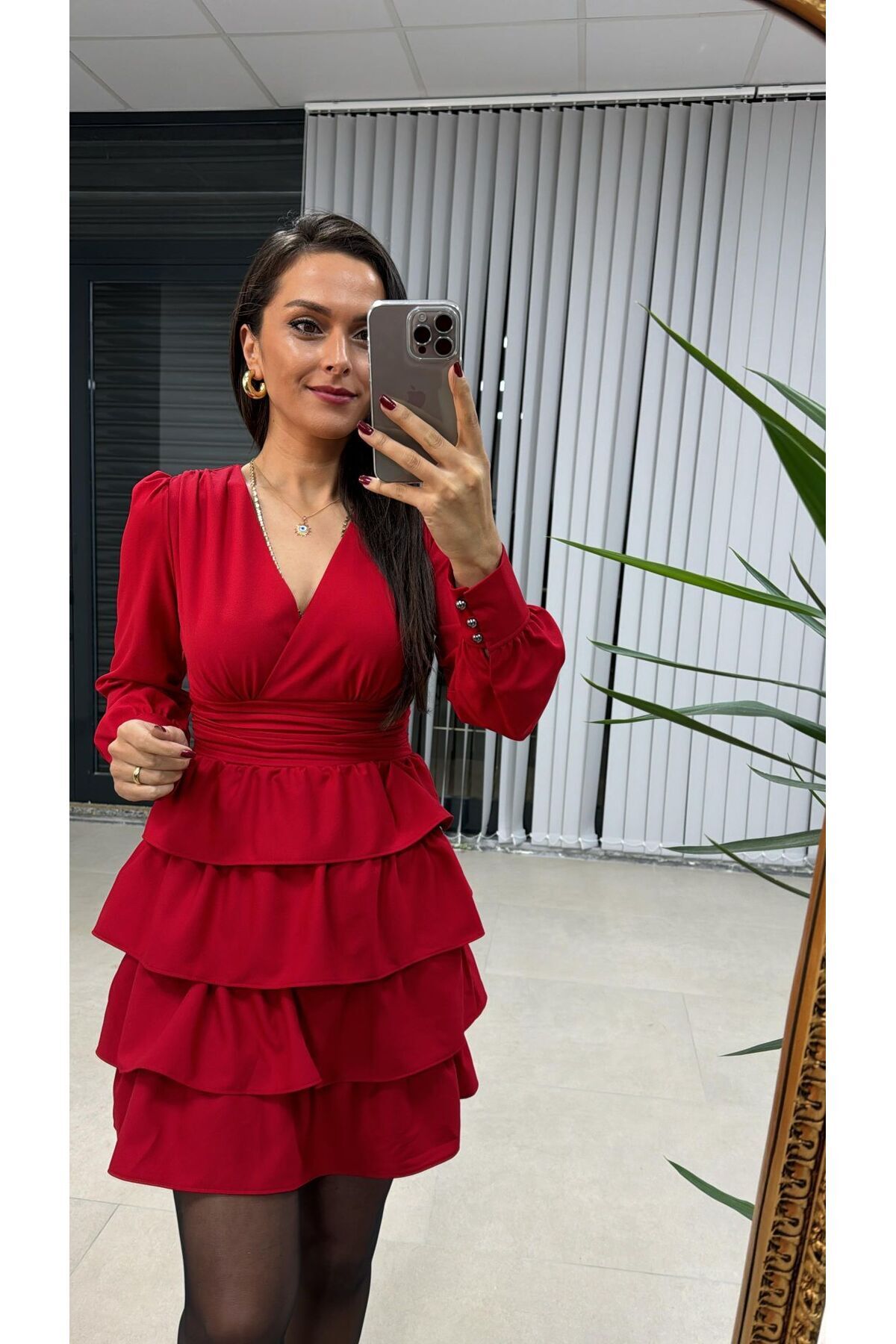 Ms Kırmızı Bel Drapeli Kat Kat Elbise Ms Kırmızı Bel Drapeli Kat Kat Elbise MsKırmızıBelDrapeliKatKatElbise XL