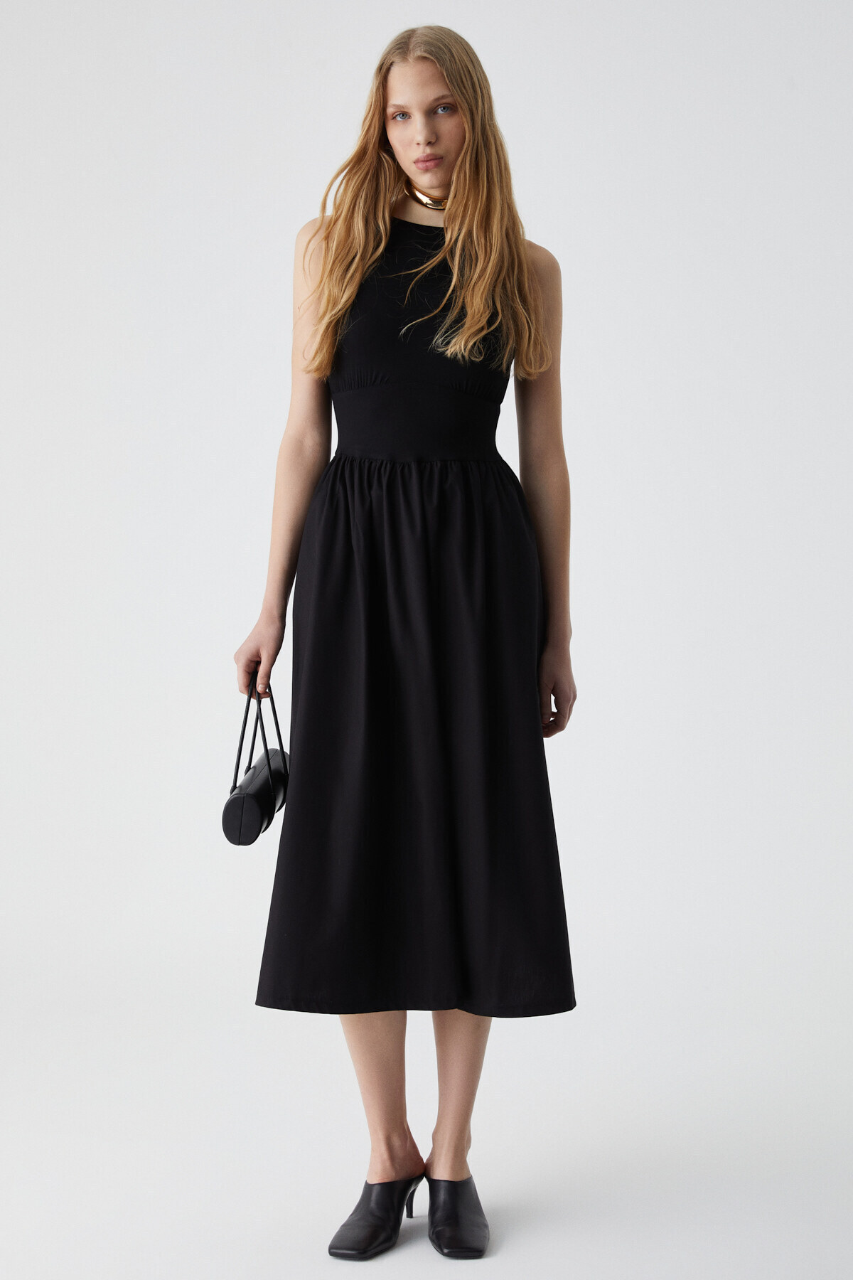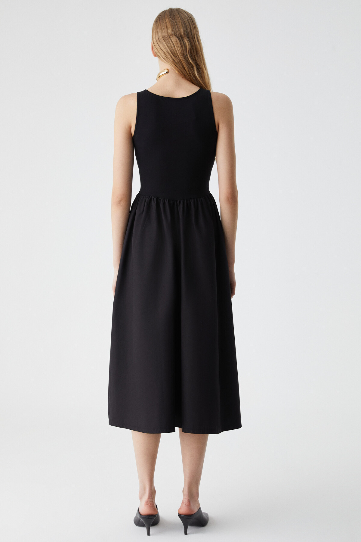 Pani Aıre Kadın Kayık Yaka Üstü Esnek Viskon Alt Kısmı Geniş Poplin Dokuma Kolsuz Siyah Elbise Pani Aıre Kadın Kayık Yaka Üstü Esnek Viskon Alt Kısmı Geniş Poplin Dokuma Kolsuz Siyah Elbise AIRE01012025 XL