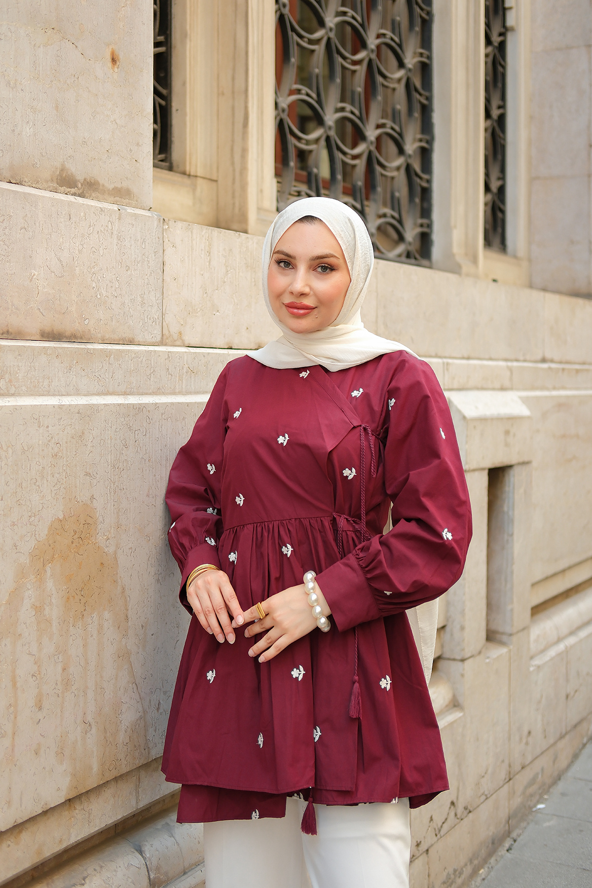 Kadın Nakış İşlemeli Yandan Bağlamalı Tunik Bordo Kadın Nakış İşlemeli Yandan Bağlamalı Tunik Bordo 182-0143 L/XL