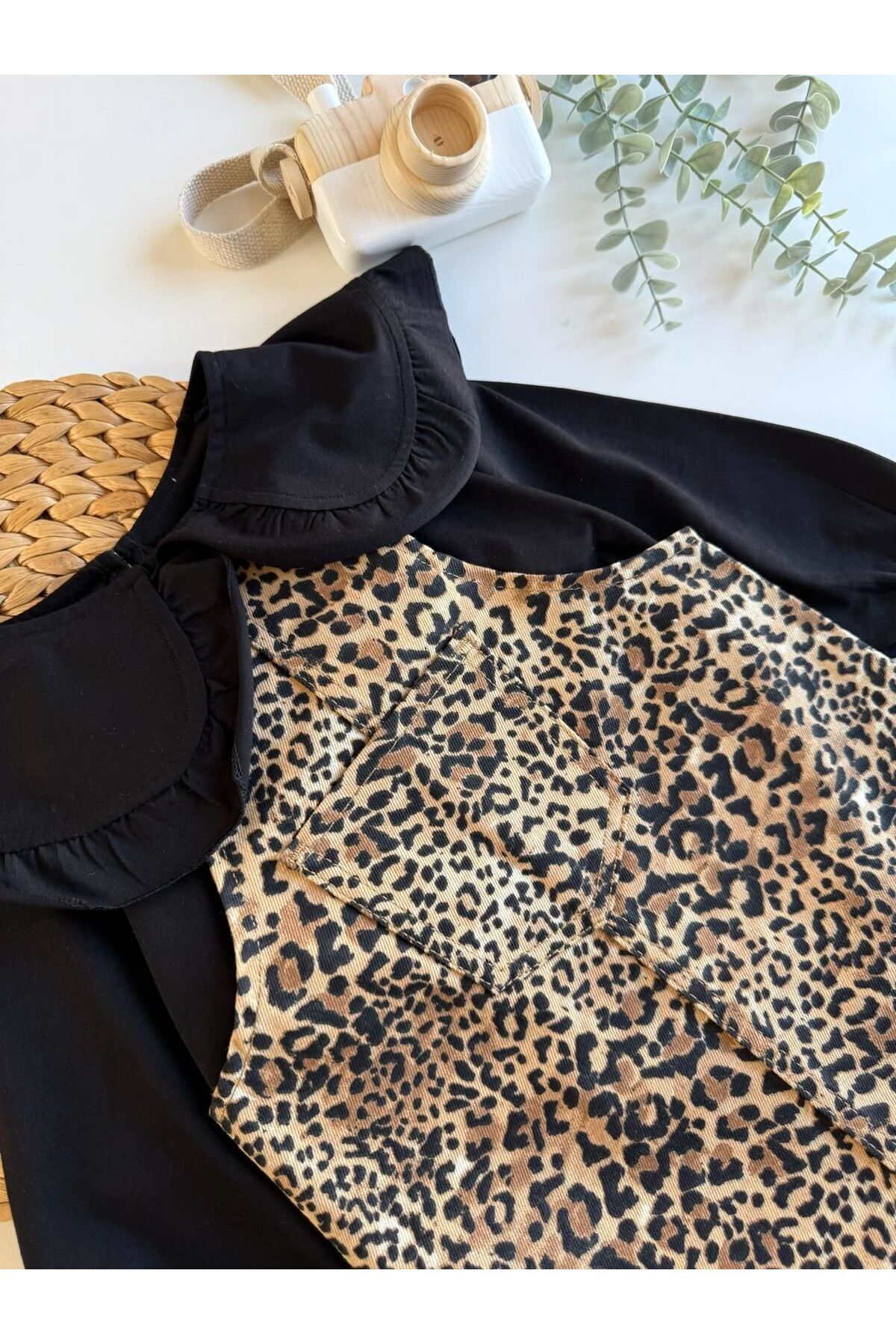 Leoparlı jile siyah bebe yaka üst Leoparlı jile siyah bebe yaka üst 1UGP8PVAD9 9-10 Yaş
