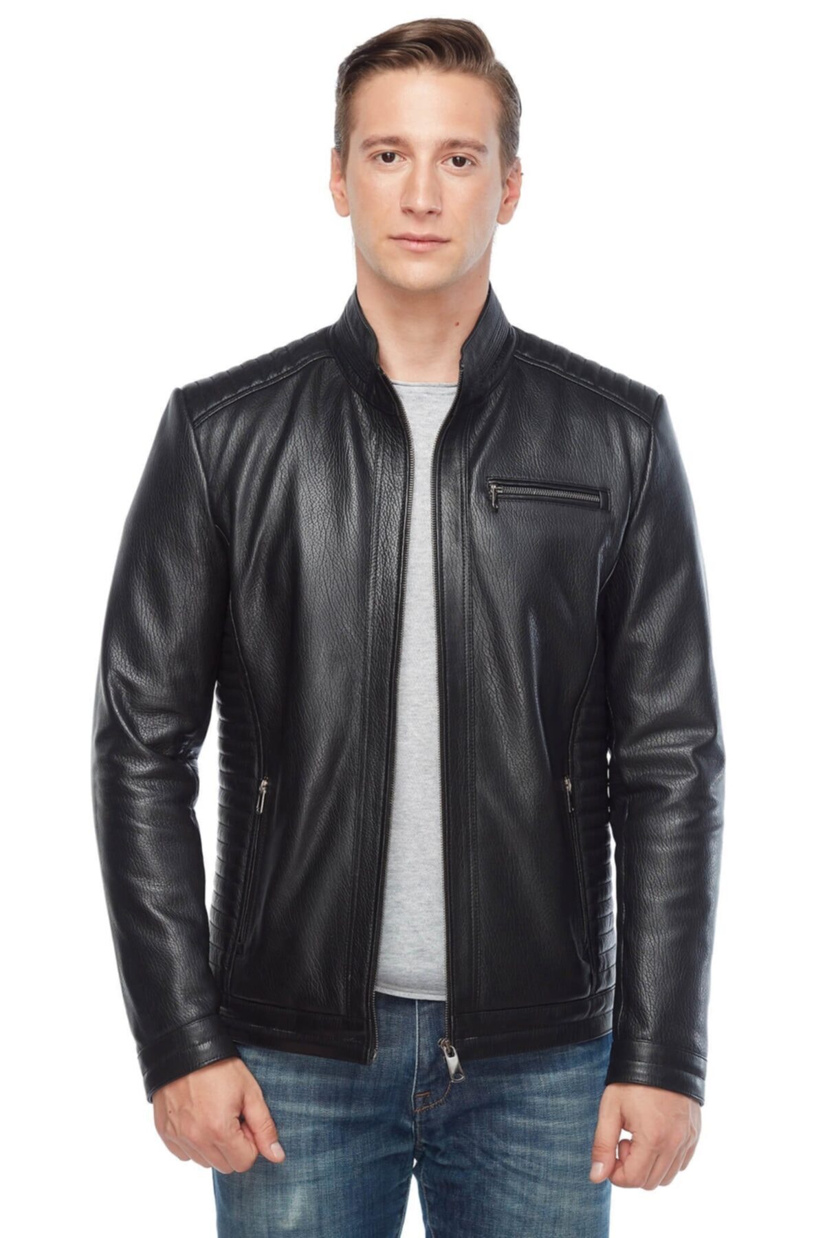Erkek Hakiki Derimont Siyah Kuzu Derisi Ceket Fermuarlı Cepli El Yapımı Motorcu Tarzı Slim Fit Erkek Hakiki Derimont Siyah Kuzu Derisi Ceket Fermuarlı Cepli El Yapımı Motorcu Tarzı Slim Fit DK14-Model 5XL