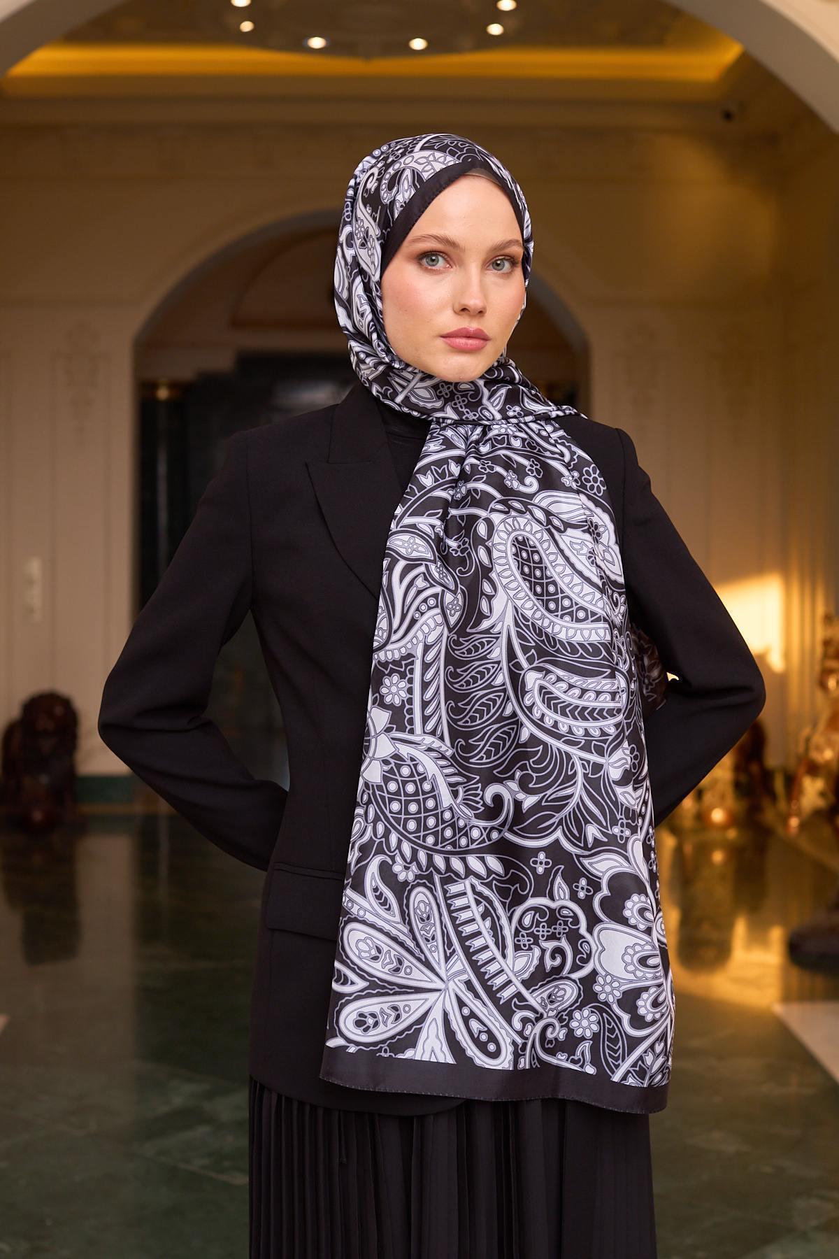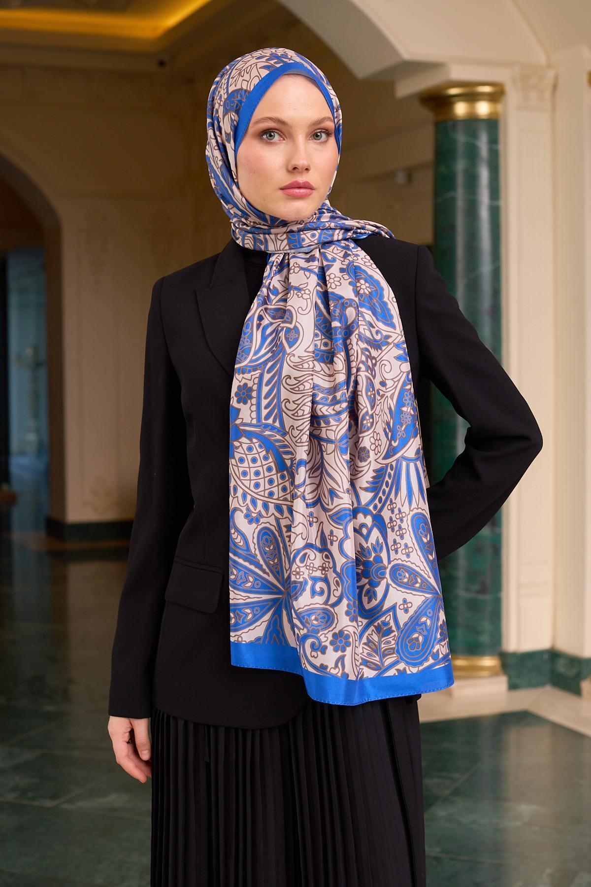 Desenli Vual Şal Saks Beyaz Vual İpek Şal - 9803-23 Desenli Vual Şal Saks Beyaz Vual İpek Şal - 9803-23 75 x 195