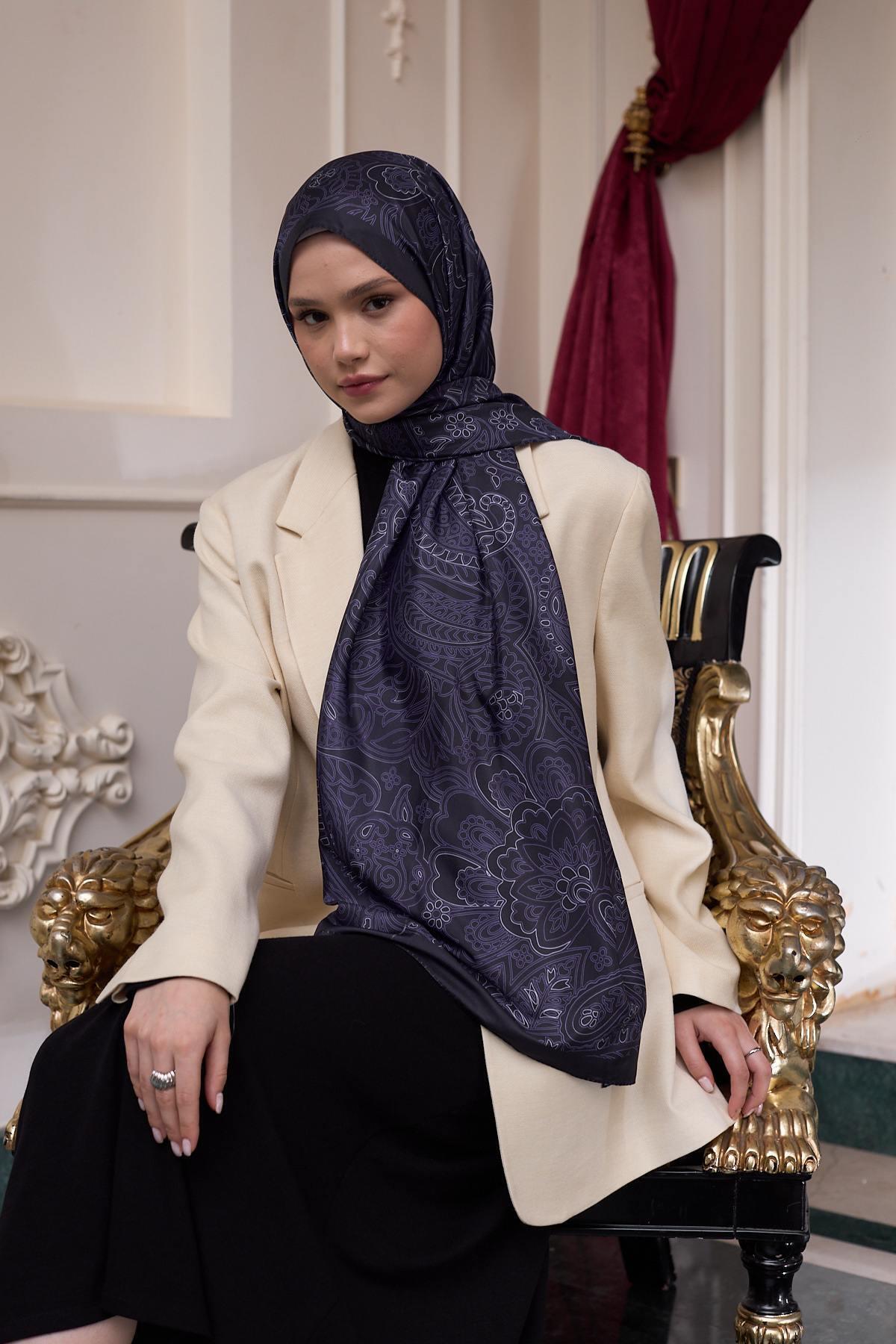 Desenli Vual Şal Siyah Mor Vual İpek Şal - 9803-25 Desenli Vual Şal Siyah Mor Vual İpek Şal - 9803-25 75 x 195