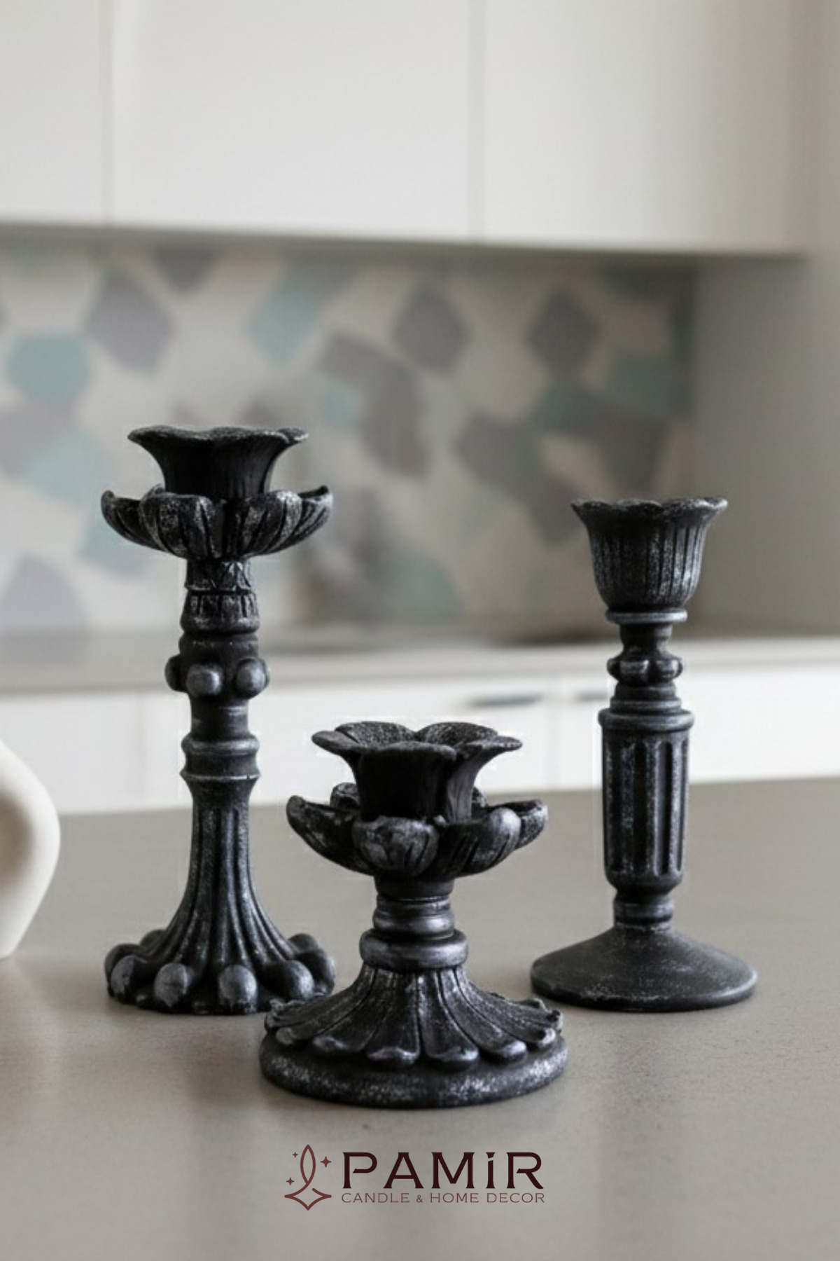 3'lü Şamdan Mumluk Fransız Romantik Antik El Sanatı Gümüş Eskitme Dekorasyon Retro Şamdanlık (ÜÇLÜ) 3'lü Şamdan Mumluk Fransız Romantik Antik El Sanatı Gümüş Eskitme Dekorasyon Retro Şamdanlık (ÜÇLÜ) TY046-PM تک سایز
