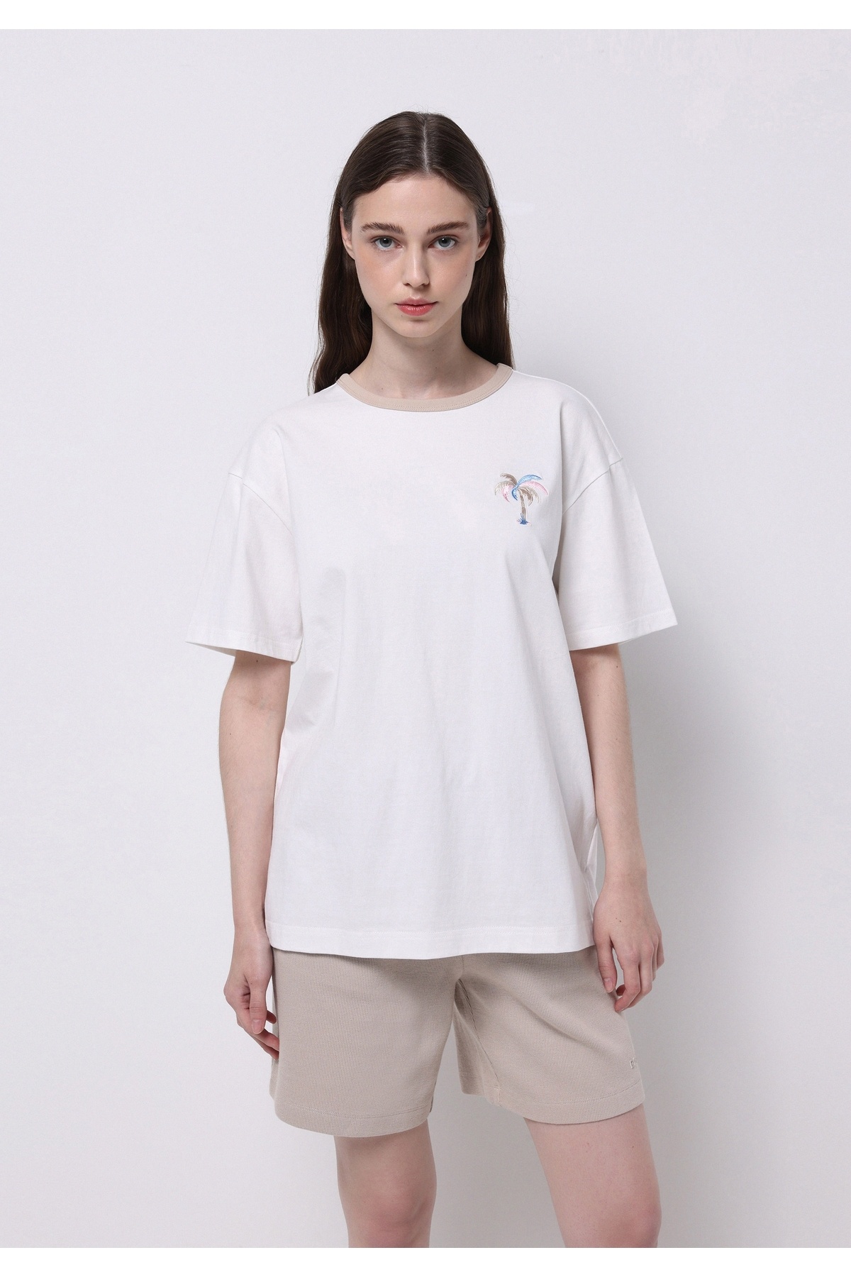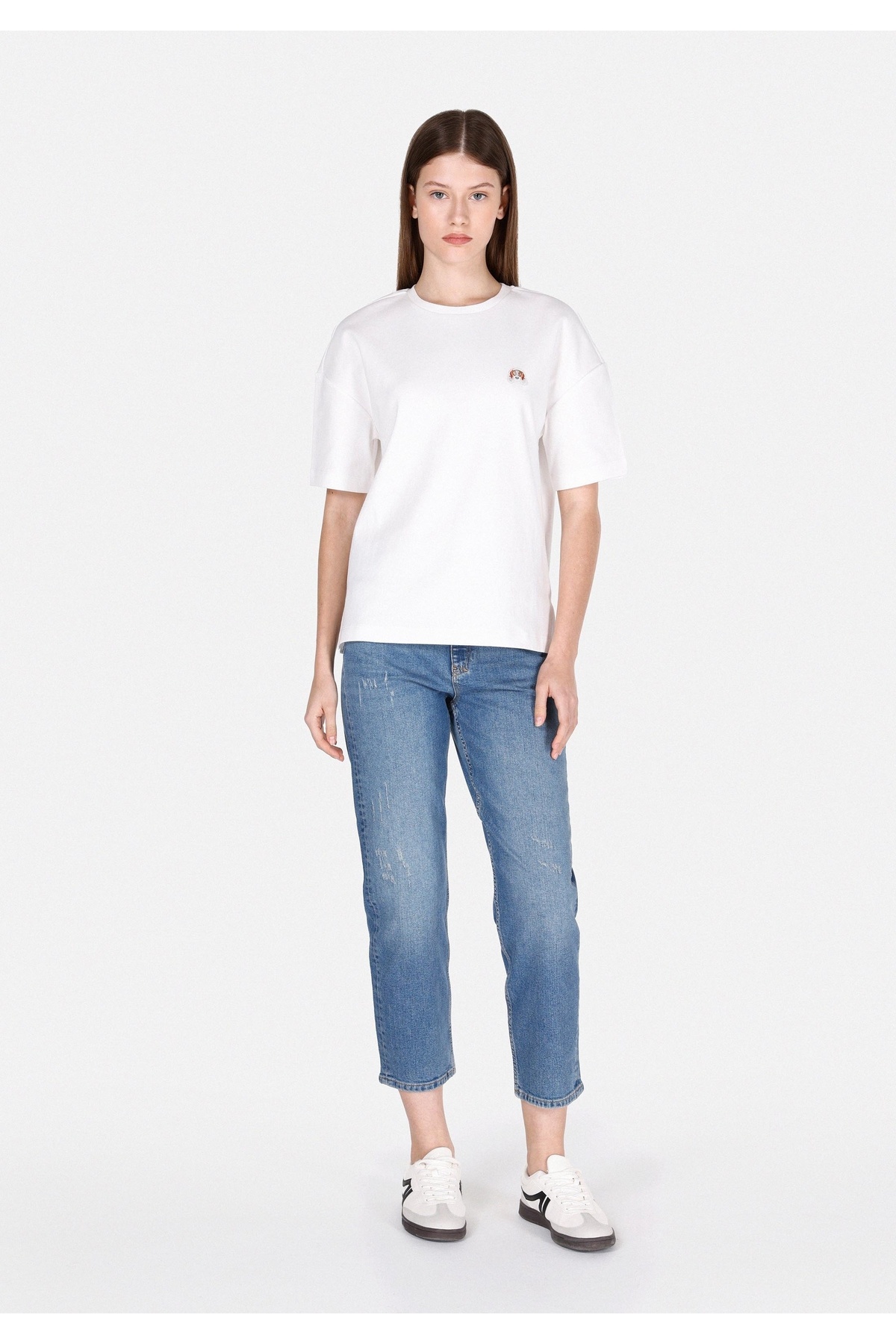 Regular Fit Yuvarlak Yaka Nakışlı Kadın Beyaz Kısa Kol Tişört Regular Fit Yuvarlak Yaka Nakışlı Kadın Beyaz Kısa Kol Tişört .CL1073463_Q1.V2_OFW XL
