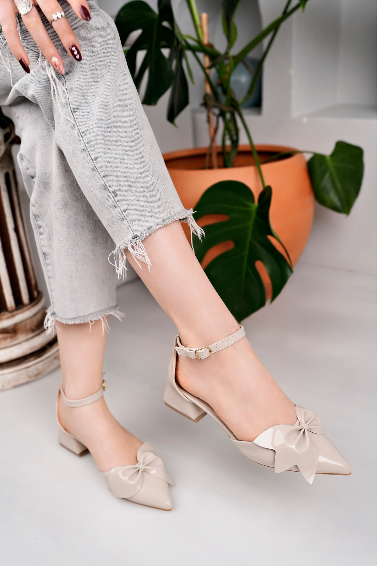Kadın Bej Rugan Topuklu Fiyonklu ayakkabı Kadın Bej Rugan Topuklu Fiyonklu ayakkabı 0562 40