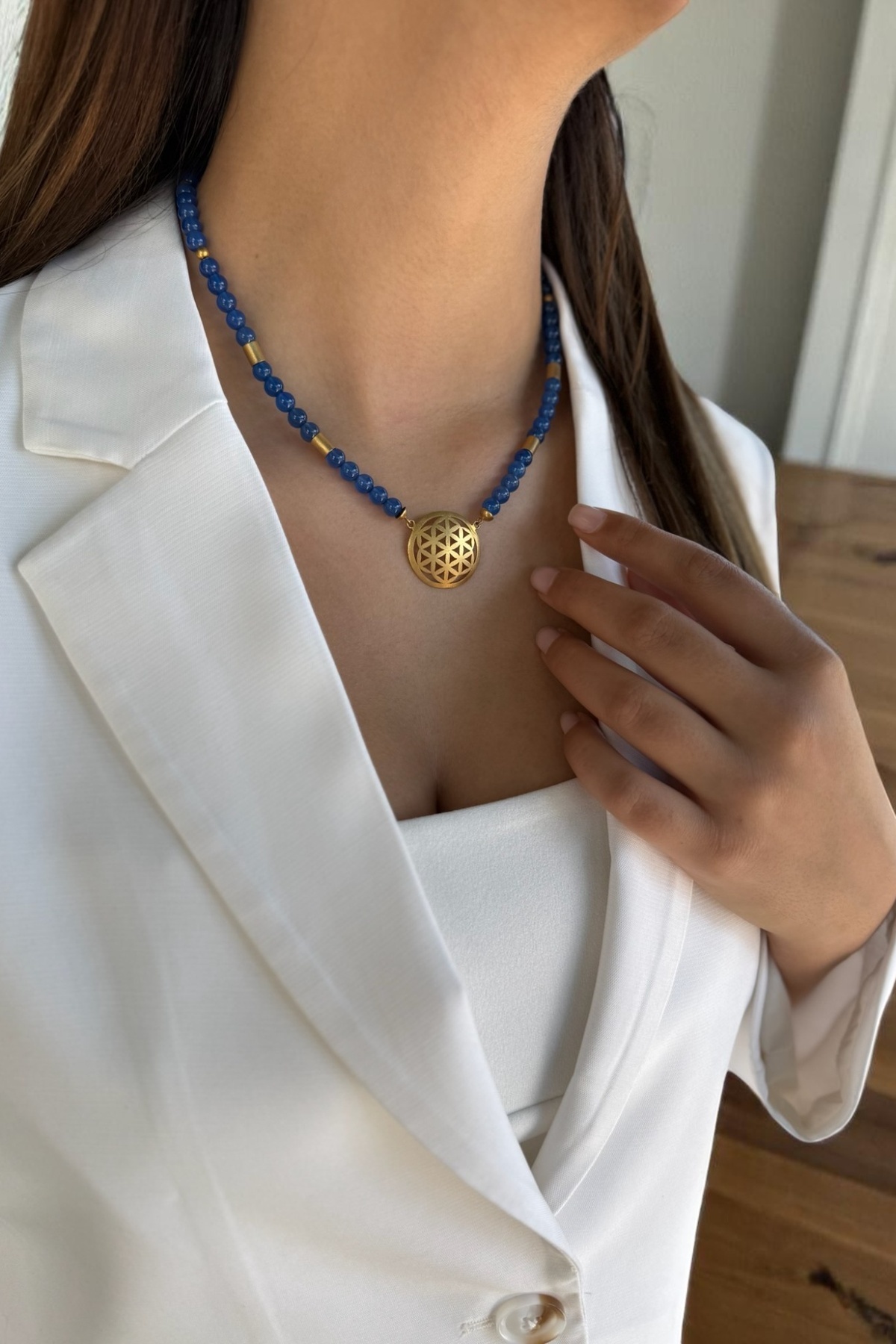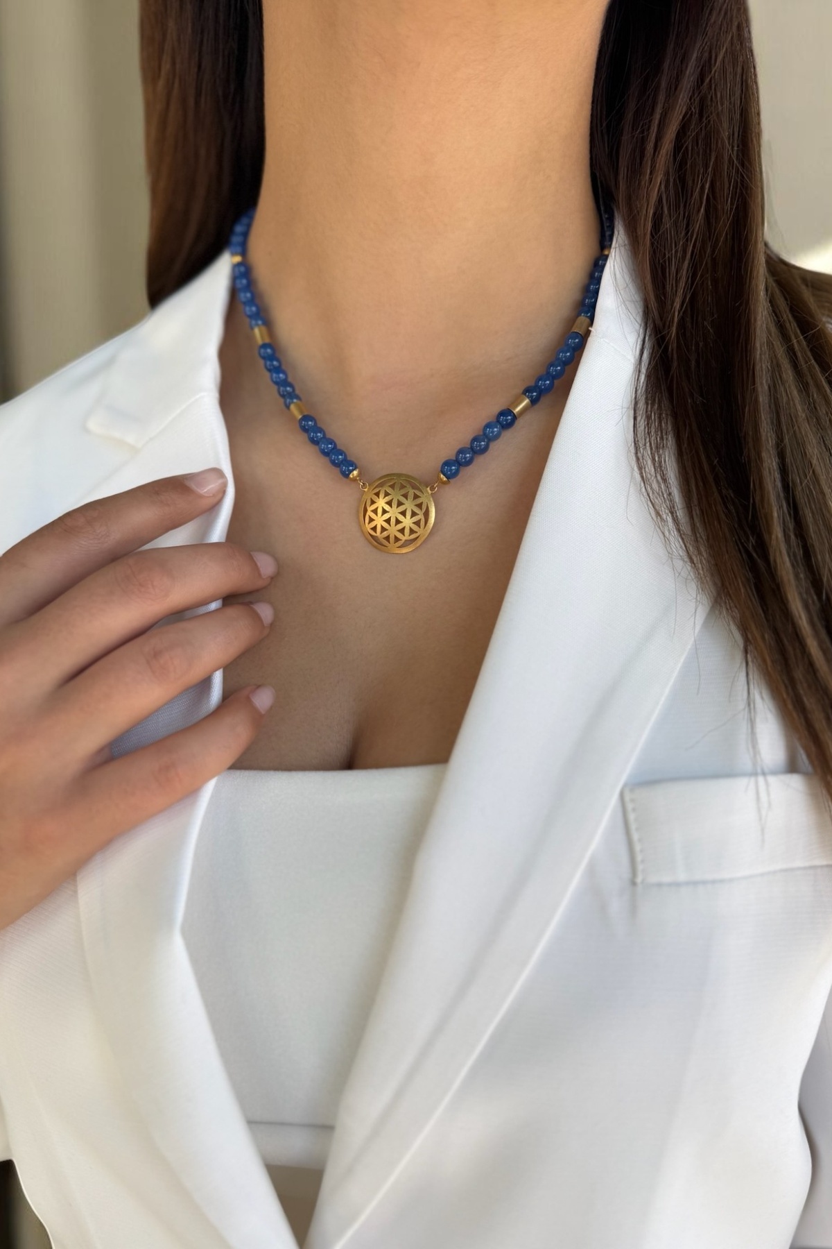 14 AYAR MAVİ AGAT TAŞLI EL İŞİ YAŞAMÇİÇEĞİ TASARIM KOLYE 14 AYAR MAVİ AGAT TAŞLI EL İŞİ YAŞAMÇİÇEĞİ TASARIM KOLYE UTKUKL1041 50 cm