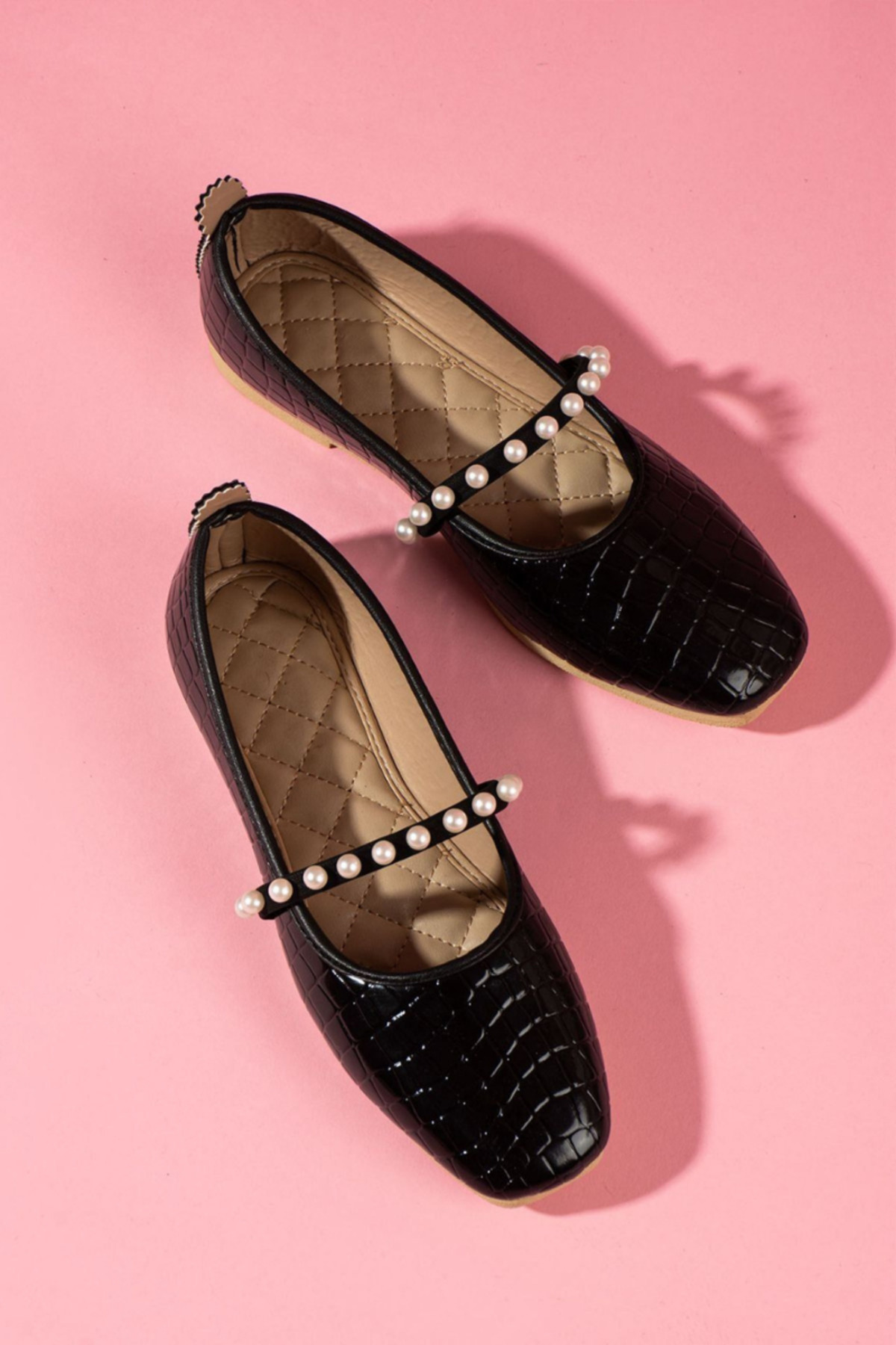 Perly Siyah Kroko Desenli İnci Bant Aksesuarlı Ayakkabı STC1074 Perly Siyah Kroko Desenli İnci Bant Aksesuarlı Ayakkabı STC1074 40