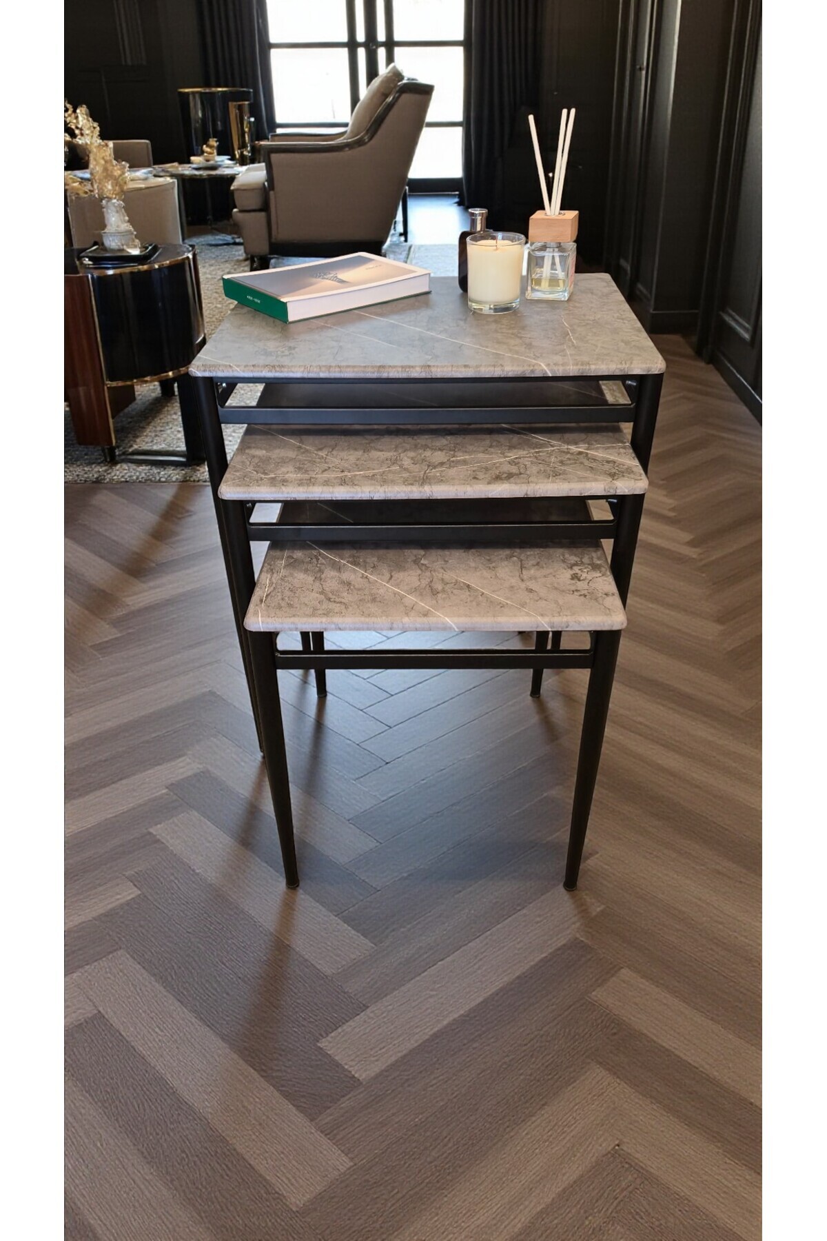 Damrin Serisi Gri Mermer Desen 1. Sınıf Mebran Mdf 3’lü Zigon Sehpa Takımı Damrin Serisi Gri Mermer Desen 1. Sınıf Mebran Mdf 3’lü Zigon Sehpa Takımı 22DAMRİN01 تک سایز