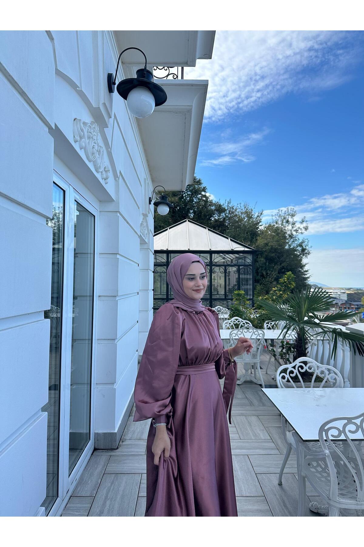 Lia Gül Kurusu Önü Büzgülü Şanel Saten Kumaş Lüks Tesettür Abiye Elbise Lia Gül Kurusu Önü Büzgülü Şanel Saten Kumaş Lüks Tesettür Abiye Elbise NK272023 44