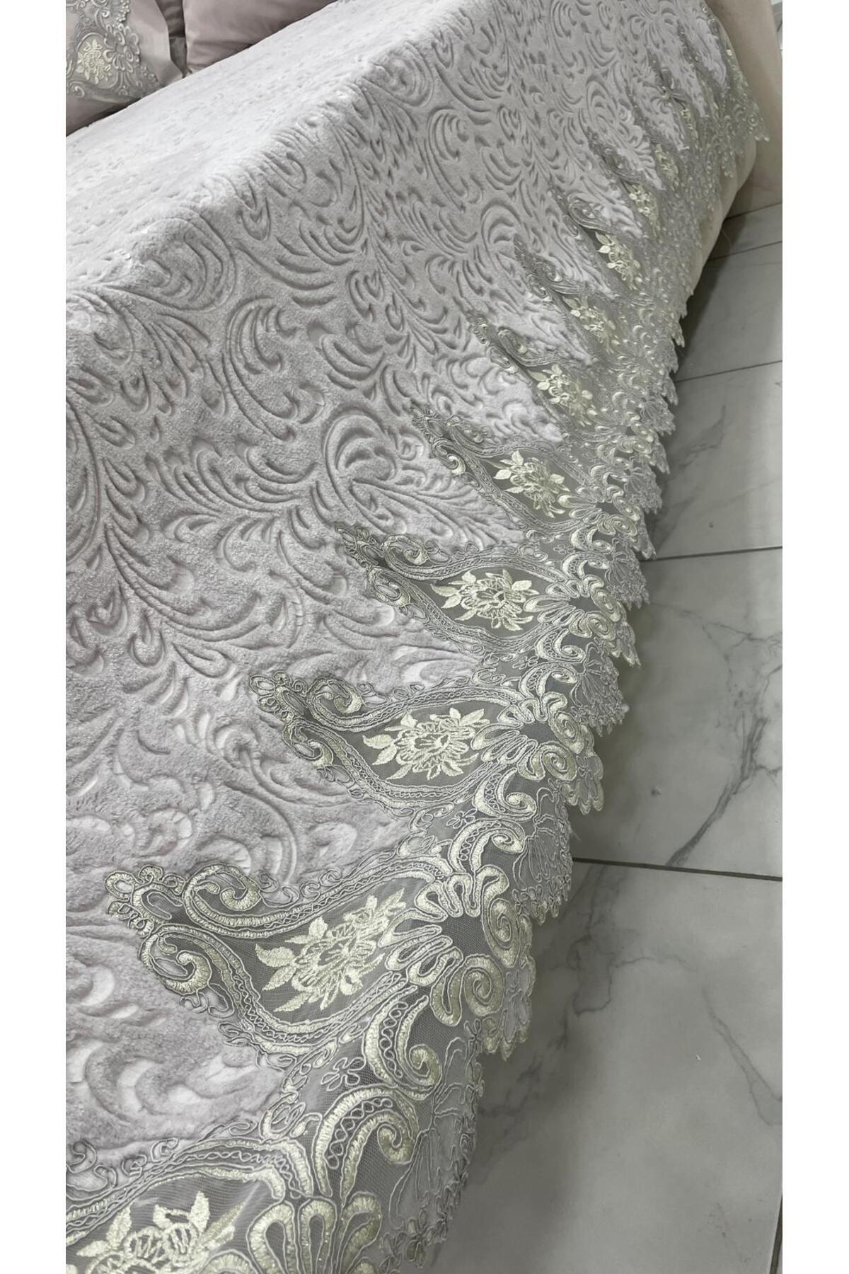 Gri fransiz dantelli battaniye seti Gri fransiz dantelli battaniye seti h-73 تک سایز