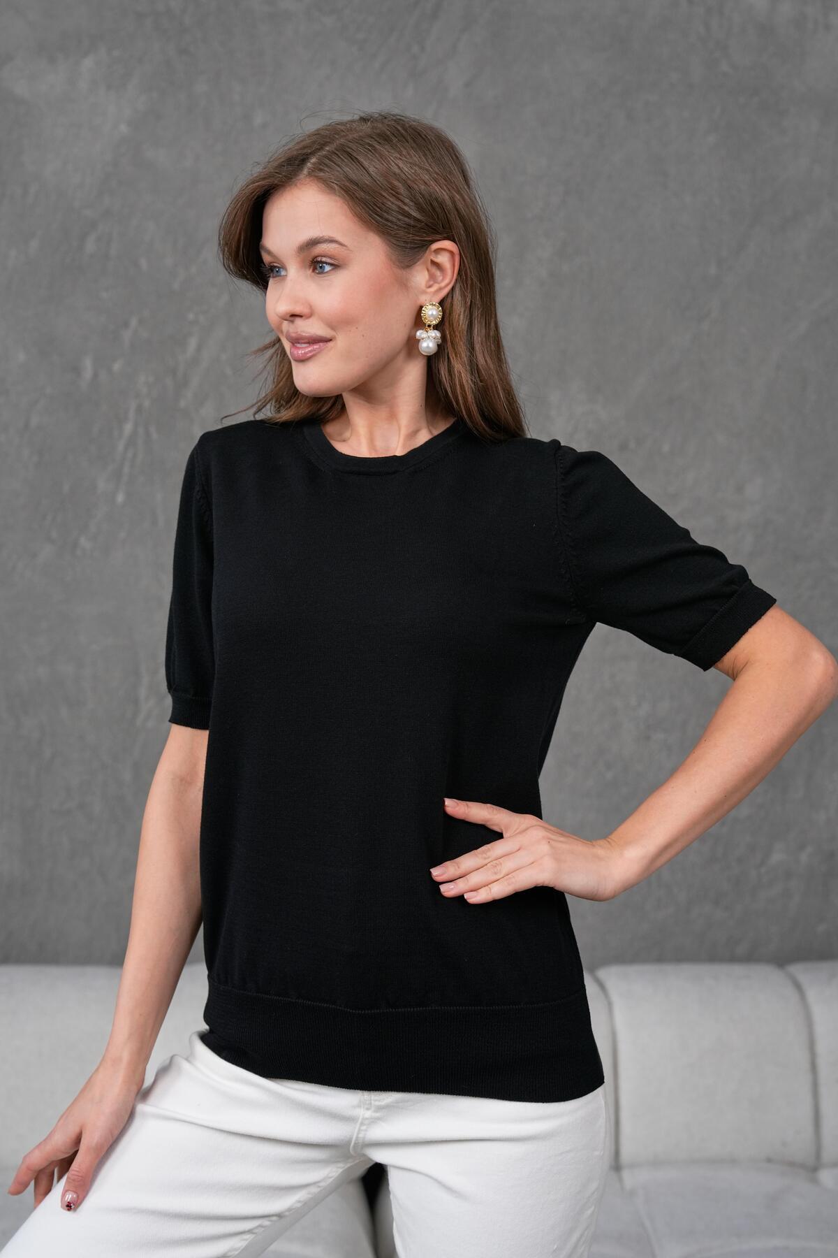 Kadın Siyah Ense Düğmeli Kısa Kol Triko Bluz 1415 Kadın Siyah Ense Düğmeli Kısa Kol Triko Bluz 1415 Standart