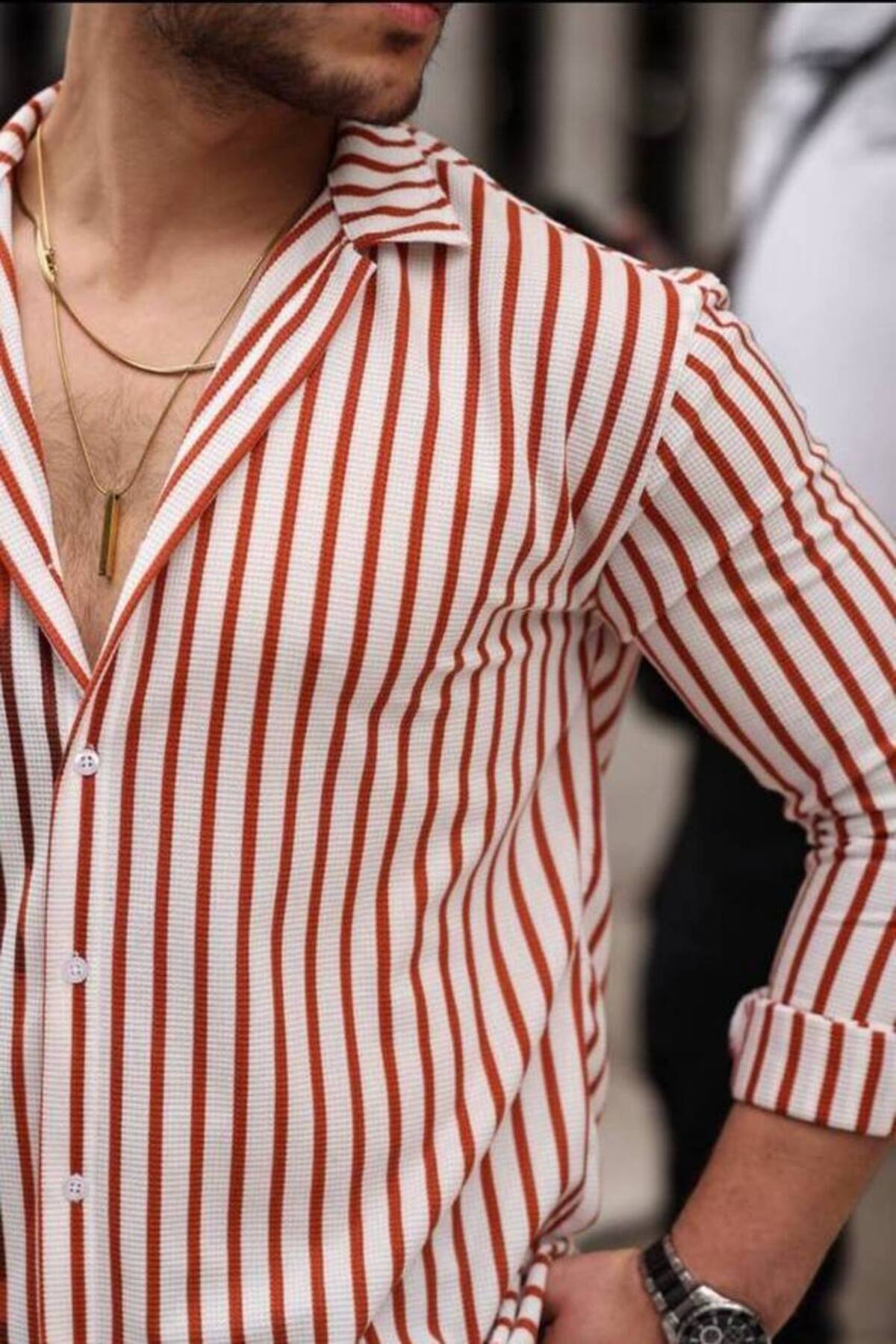 Erkek Çizgili Waffle Gömlek Erkek Çizgili Waffle Gömlek ÇWG1 2XL