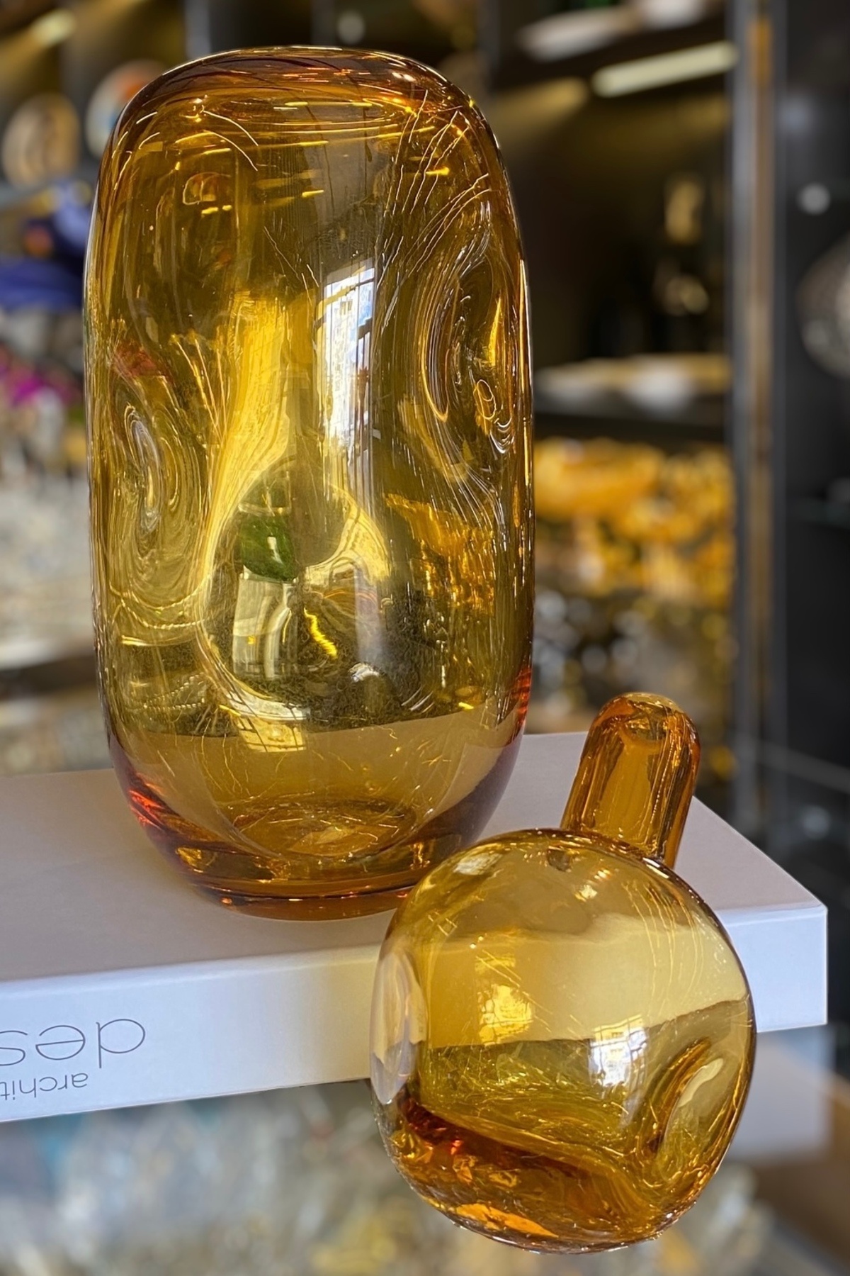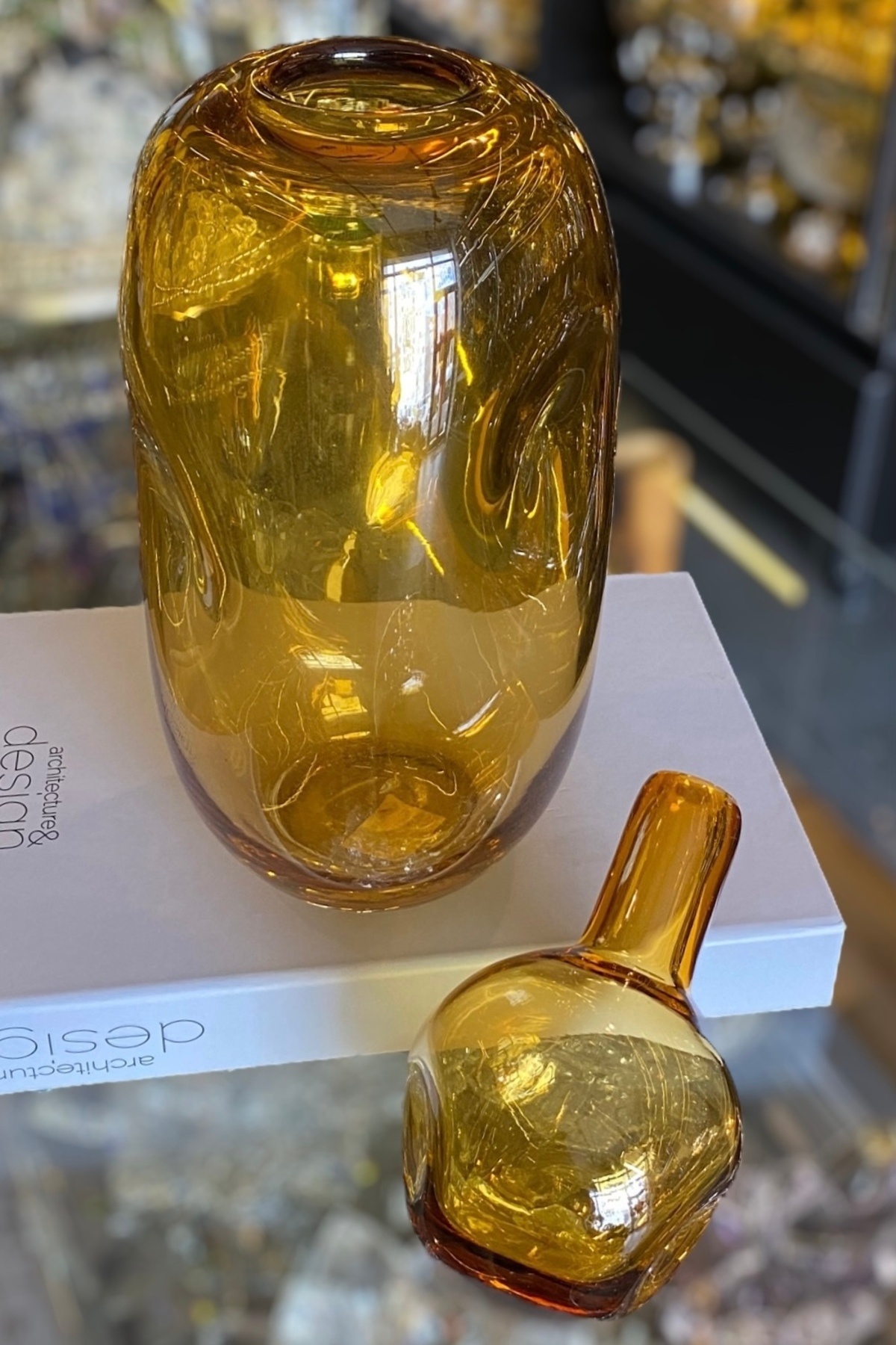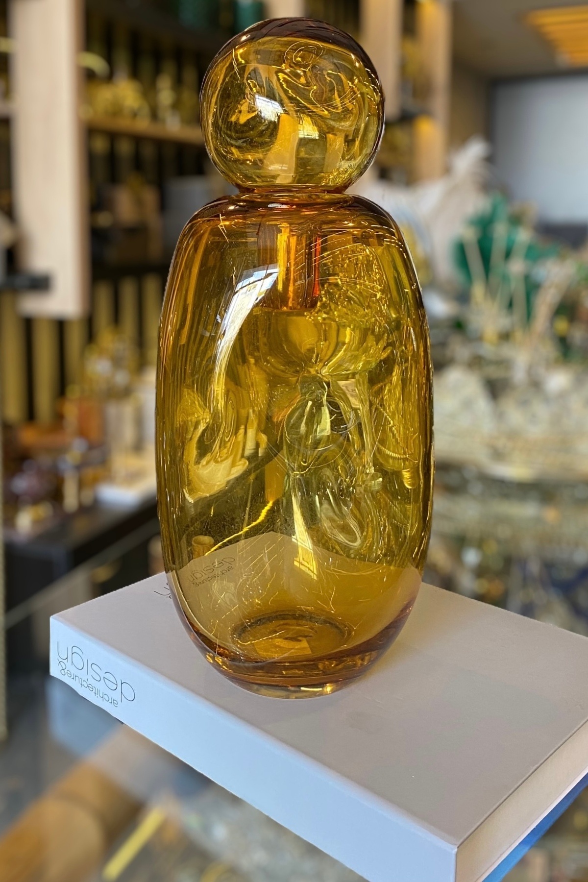 Amber Üfleme Cam Kapaklı Vazo-dekoratif Şişe 36 Cm Amber Üfleme Cam Kapaklı Vazo-dekoratif Şişe 36 Cm lemi967 تک سایز