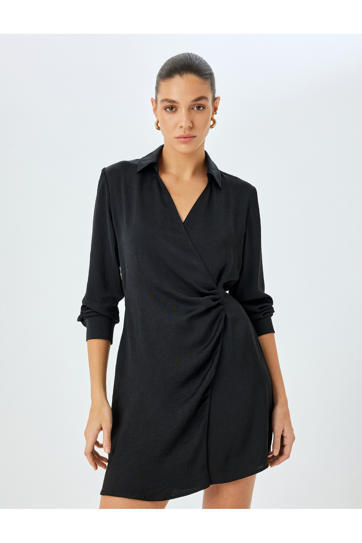 Bağlama Detaylı Kolsuz Mini Kruvaze Keten Karışımlı Gömlek Elbise Bağlama Detaylı Kolsuz Mini Kruvaze Keten Karışımlı Gömlek Elbise 5SAK80168UW 42