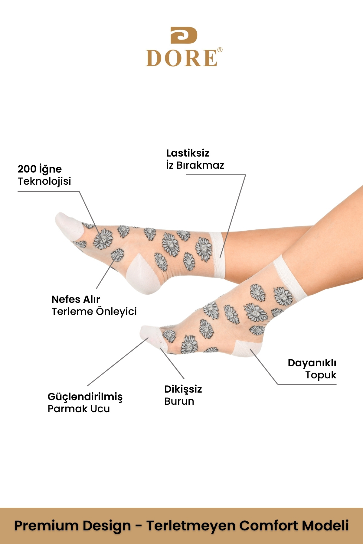 Orijinal Kadın Premium Kalite Papatya Desenli Tül Çorap Özel Tasarım Transparan Soket Çorap 1 Çift Orijinal Kadın Premium Kalite Papatya Desenli Tül Çorap Özel Tasarım Transparan Soket Çorap 1 Çift Socks Çiçek Marka En İyi Model SC0115 36-39