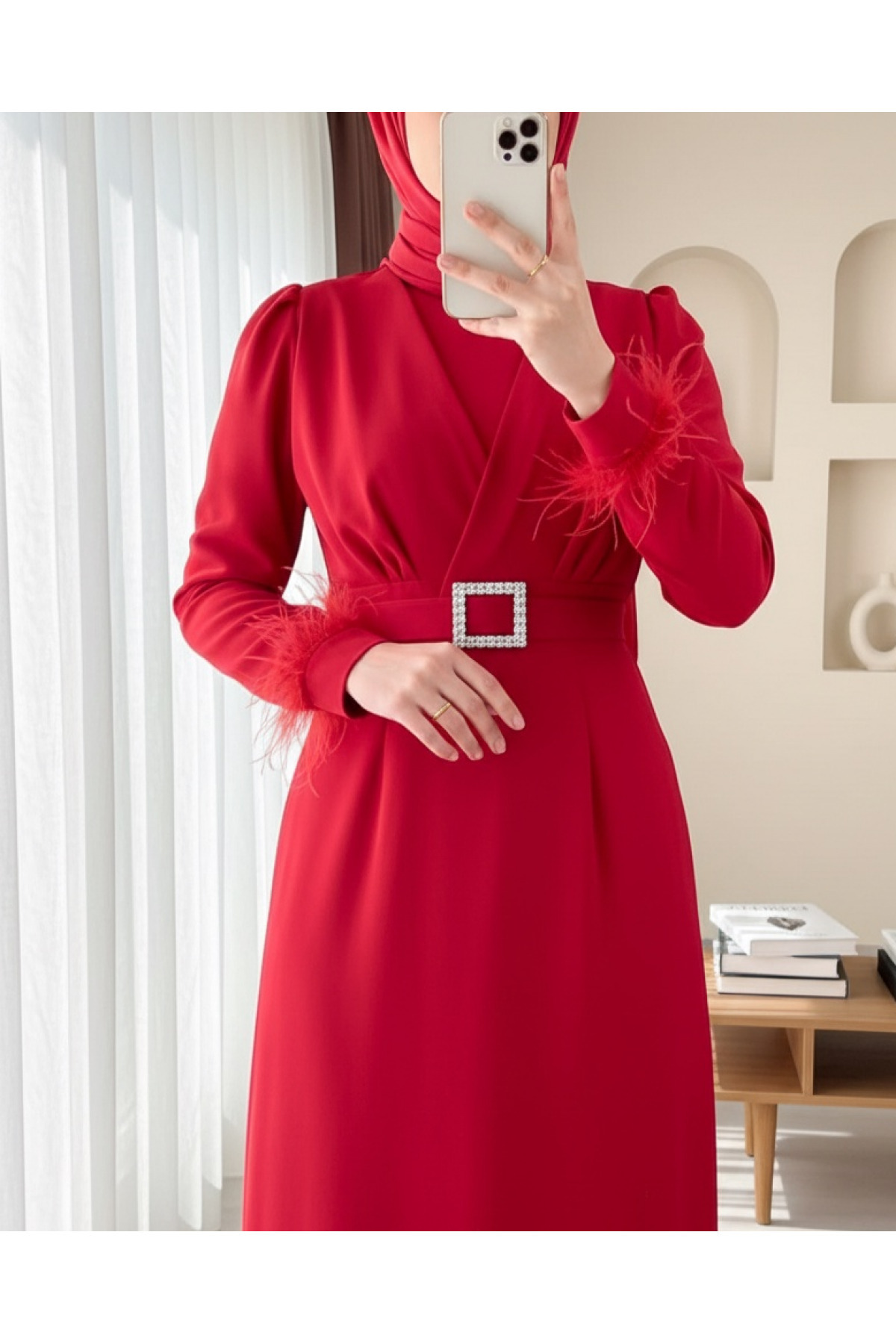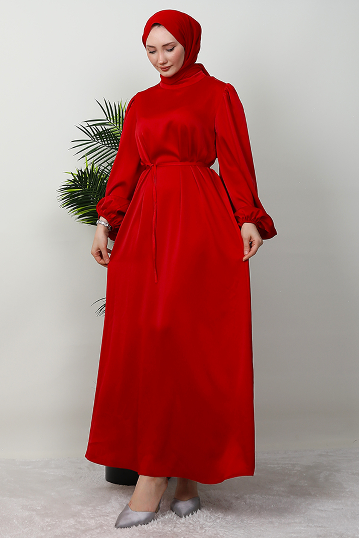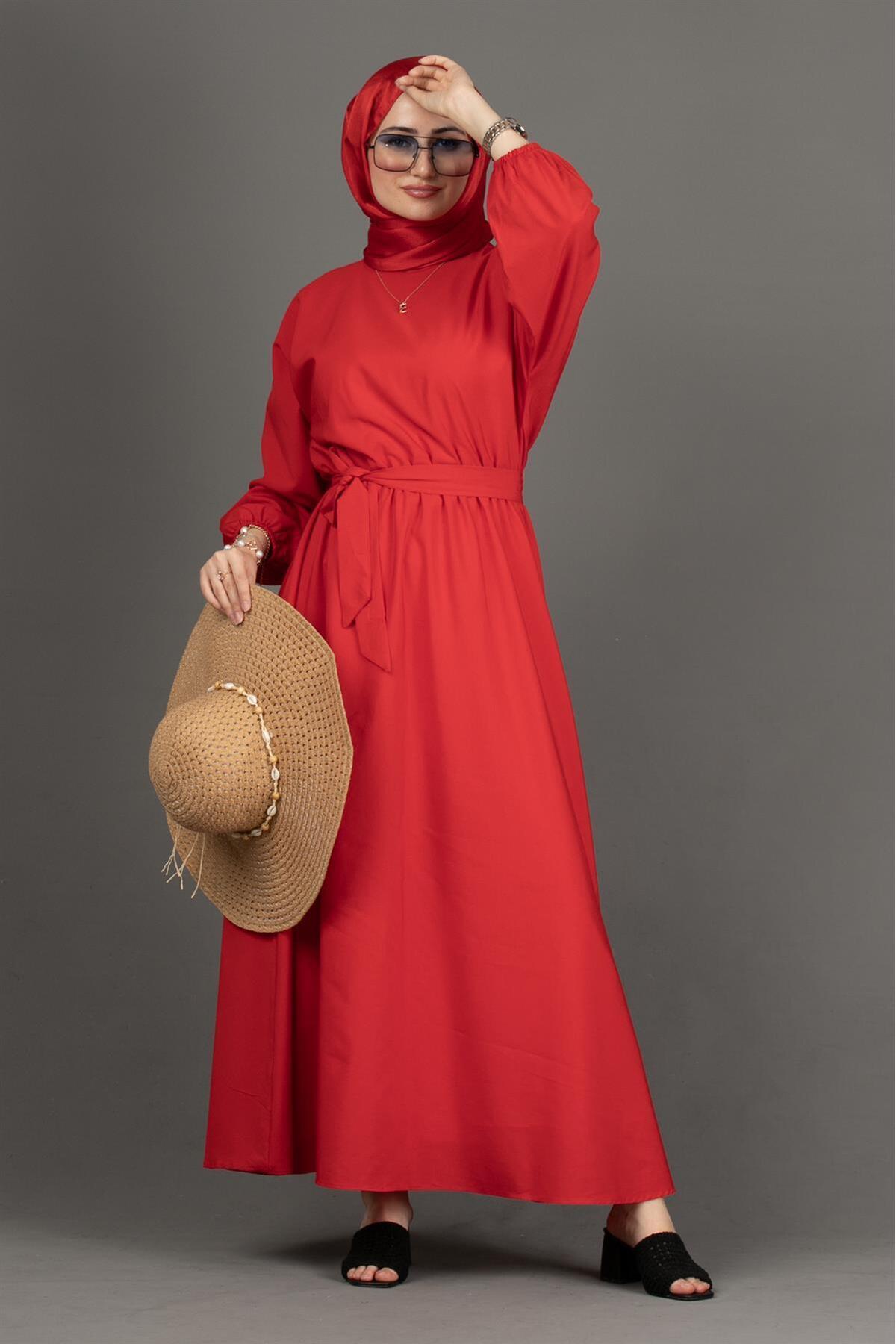 İnce Kuşaklı Saten Elbise Kırmızı İnce Kuşaklı Saten Elbise Kırmızı 6396740 44
