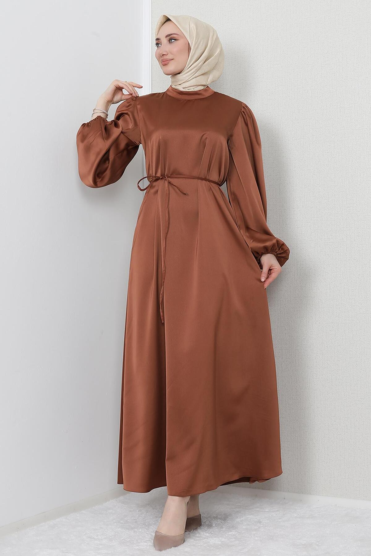 İnce Kuşaklı Saten Elbise Bej İnce Kuşaklı Saten Elbise Bej 6396740 44