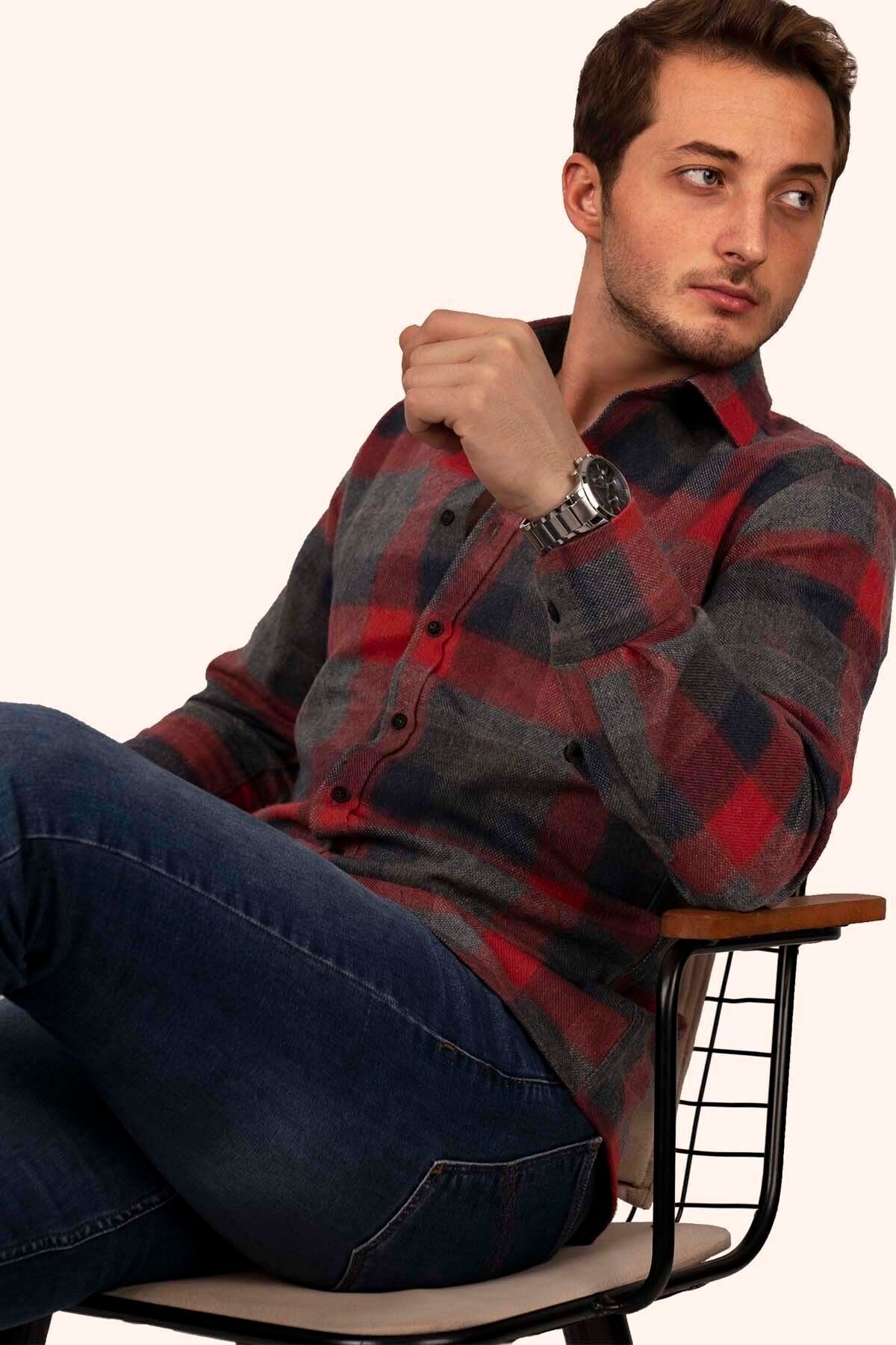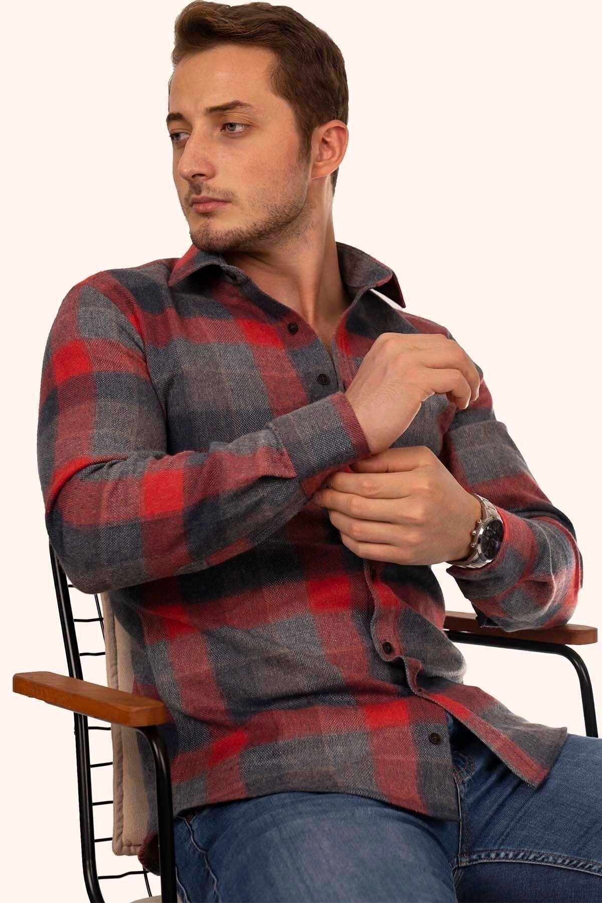 Kırmızı Gri Dama Desenli Slimfit Oduncu Hediye Kutulu Erkek Gömlek Kırmızı Gri Dama Desenli Slimfit Oduncu Hediye Kutulu Erkek Gömlek 3150 2XL
