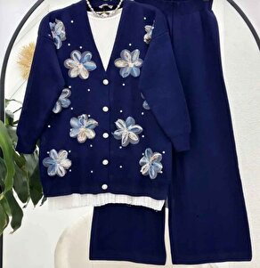 Çiçekli Triko Takım (LACİVERT) Çiçekli Triko Takım (LACİVERT) SMLCİCEK01 Standart