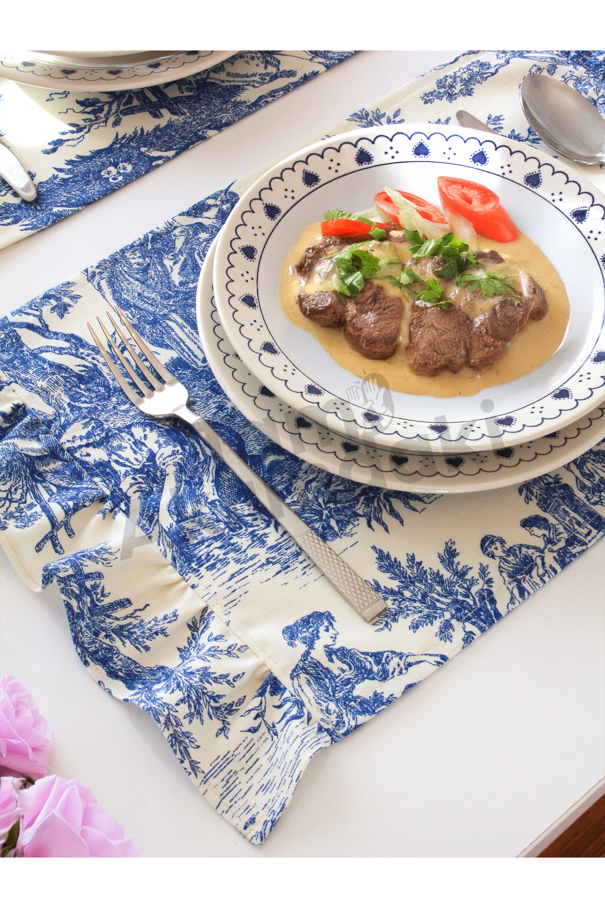 Premium 2'li Fırfırlı & Fransız Köylüleri Desenli Kumaş Amerikan Servis Seti - Vintage ve Şık Set Premium 2'li Fırfırlı & Fransız Köylüleri Desenli Kumaş Amerikan Servis Seti - Vintage ve Şık Set 8680990110202 تک سایز