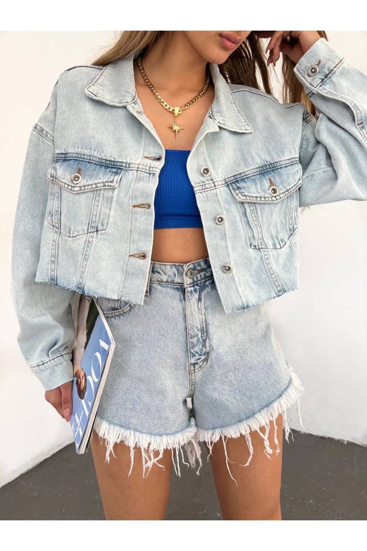 Düz Crop Denim Ceket Düz Crop Denim Ceket VJ2449003 L