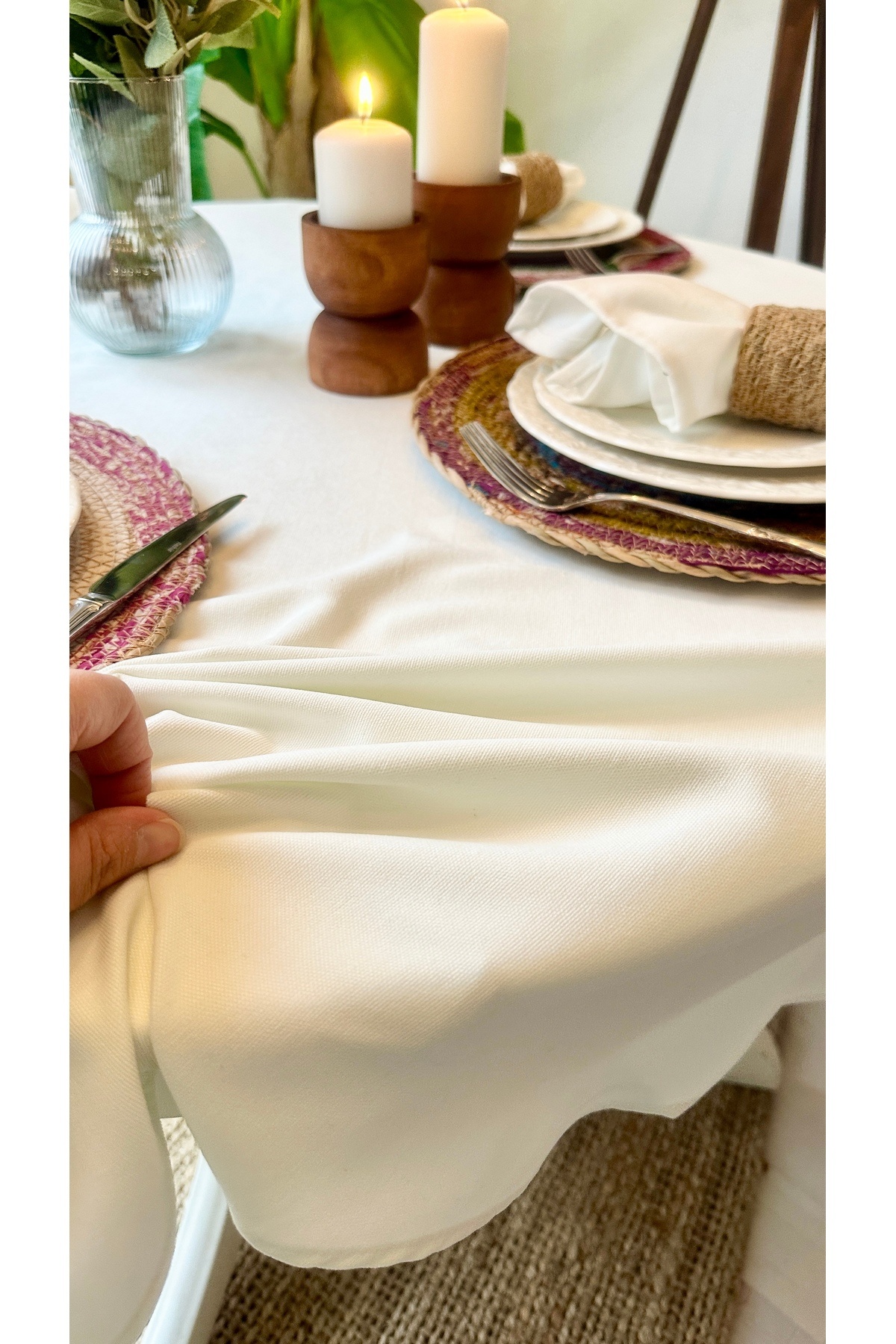 Kadife Dokulu Dertsiz Leke Tutmaz Beyaz Yuvarlak Masa Örtüsü Kadife Dokulu Dertsiz Leke Tutmaz Beyaz Yuvarlak Masa Örtüsü VDM81-2 210 x 210