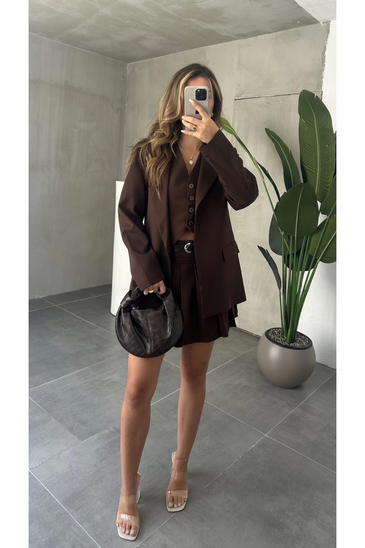 Kahverengi Etek Blazer Ceket Premium Takım Kahverengi Etek Blazer Ceket Premium Takım TKM1024 L