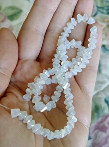 مشخصات فنی 1 Dizi (80-85 Adet) - 6 mm Üçgen Kristal Cam Boncuk Dizisi Şeffaf Janjanlı Buz Beyazı Renk 1.Kalite Menşei TR Bakım Talimatları (Genel) Ürünün kullanım ömrünü korumak için ürüne özel bakım talimatlarını takip ediniz. مشخصات کلی