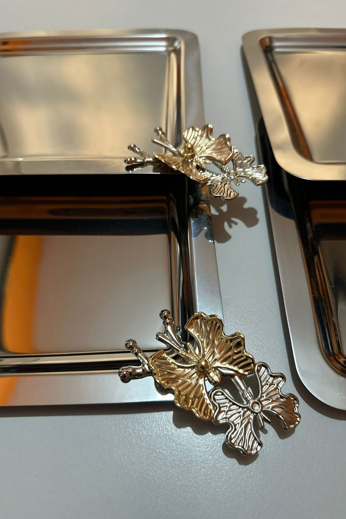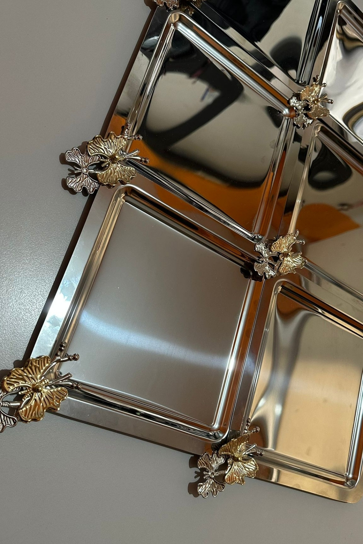 Kelebek Aksesuarlı Kare Paslanmaz Çelik 6’lı Gümüş Kahve, Çay, Dekoratif Sunum Servis Söz Tepsisi Kelebek Aksesuarlı Kare Paslanmaz Çelik 6’lı Gümüş Kahve, Çay, Dekoratif Sunum Servis Söz Tepsisi kelebek-6 تک سایز