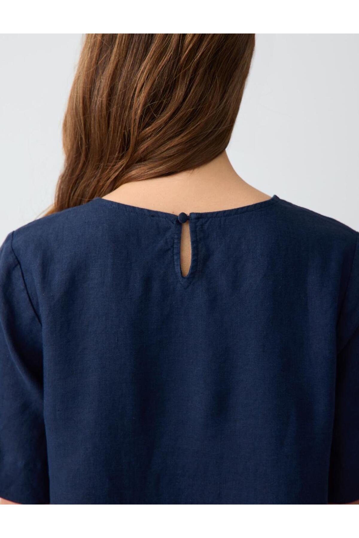 Lacivert %100 Keten Yuvarlak Yaka Kısa Kollu Mini Elbise Lacivert %100 Keten Yuvarlak Yaka Kısa Kollu Mini Elbise 5SW063166 XL