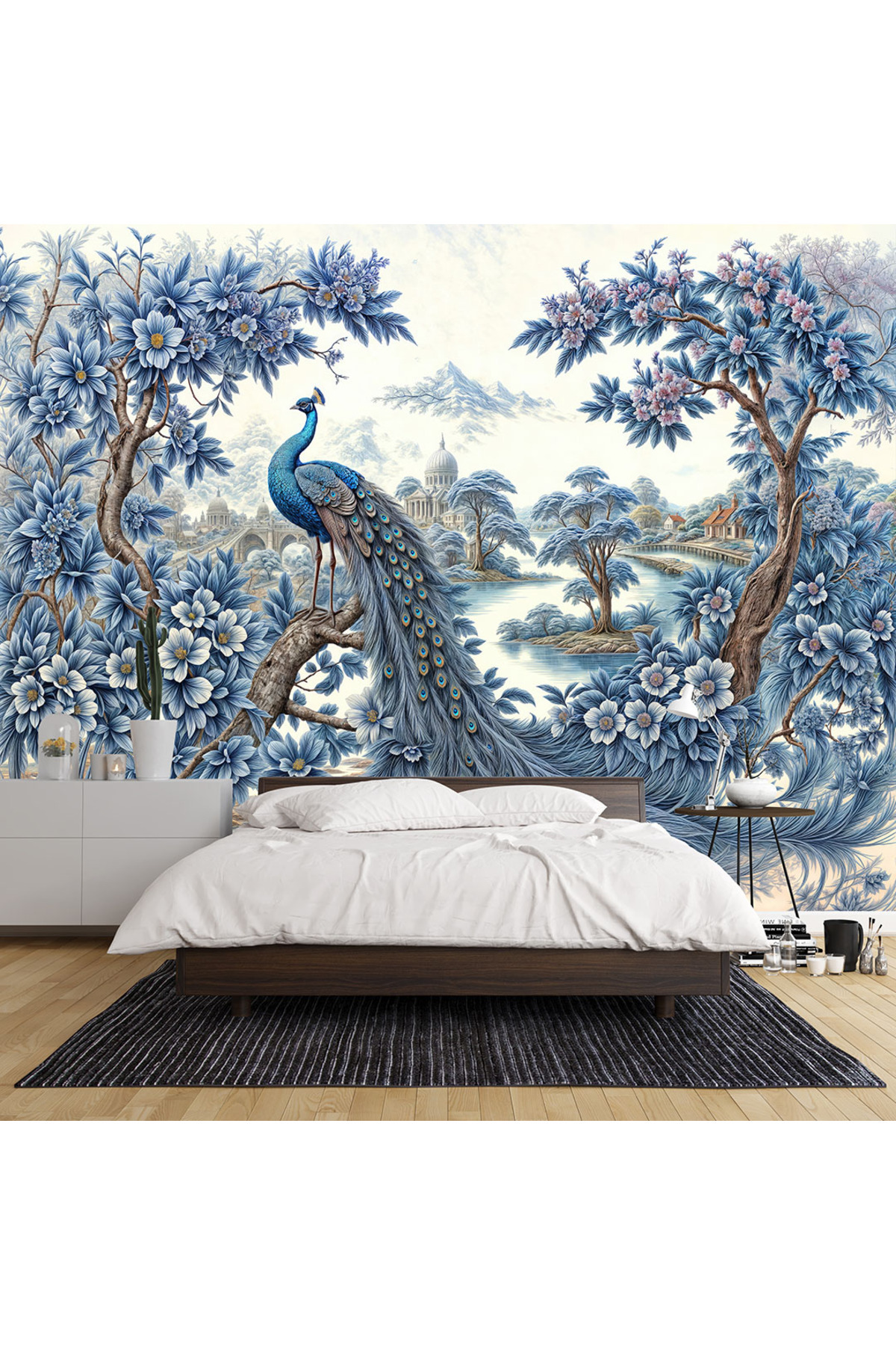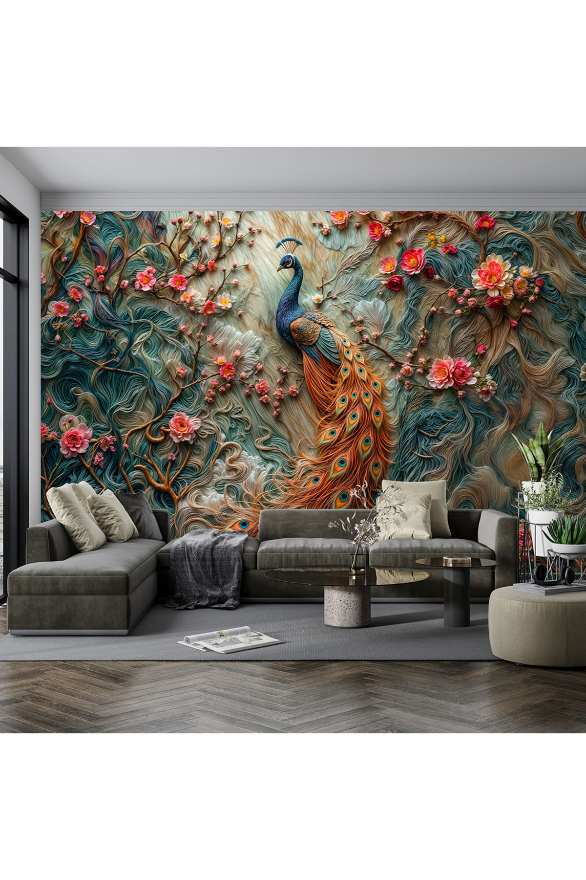 tavuskuşunun çiçeklerle uyumu poster duvar kağıdı tavuskuşunun çiçeklerle uyumu poster duvar kağıdı 20909 150 x 110