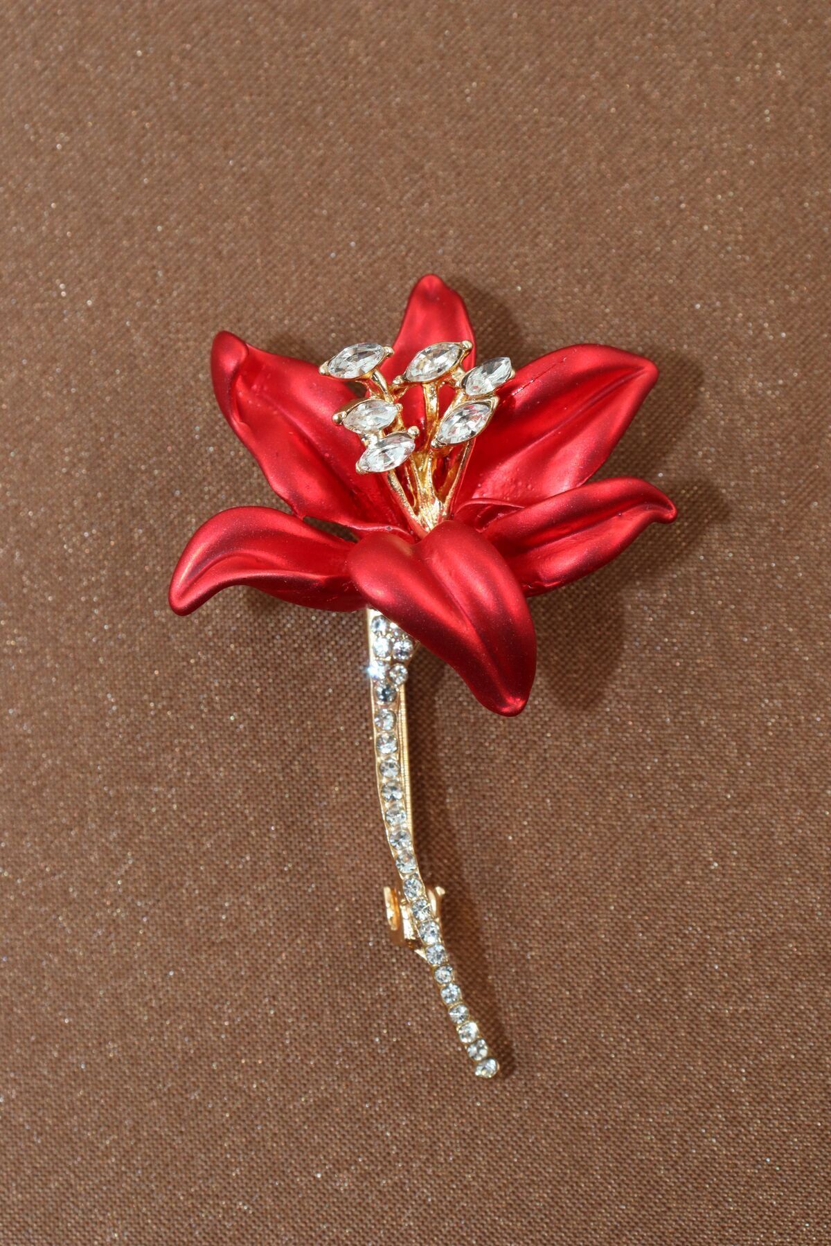 Zirkon taşlı kırmızı zambak broş. Yaka iğnesi zambak broş. Taşlı zambak broş.Kadın broş. Zambak broş Zirkon taşlı kırmızı zambak broş. Yaka iğnesi zambak broş. Taşlı zambak broş.Kadın broş. Zambak broş KBROS418 تک سایز