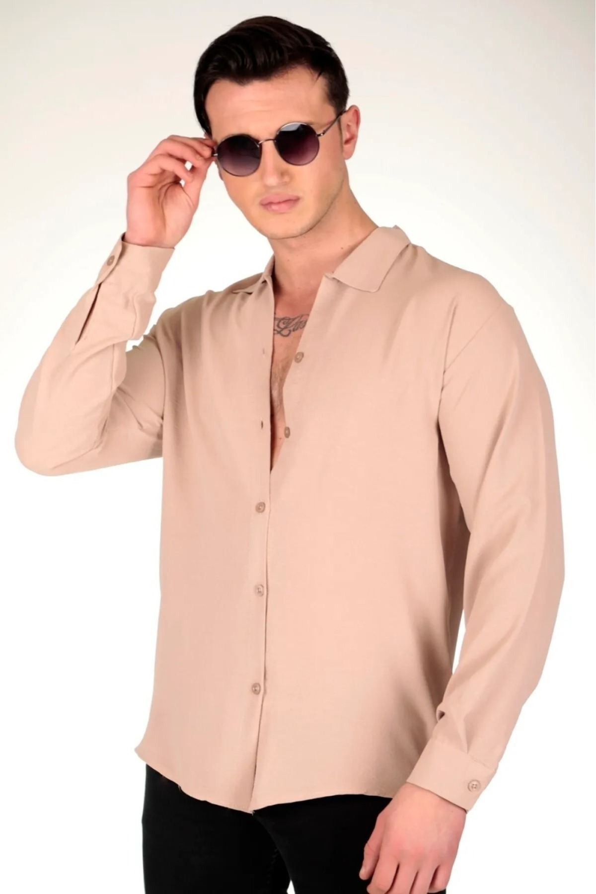 Erkek Dokulu Aerobin Keten Oversize Gömlek Erkek Dokulu Aerobin Keten Oversize Gömlek gamarog XL