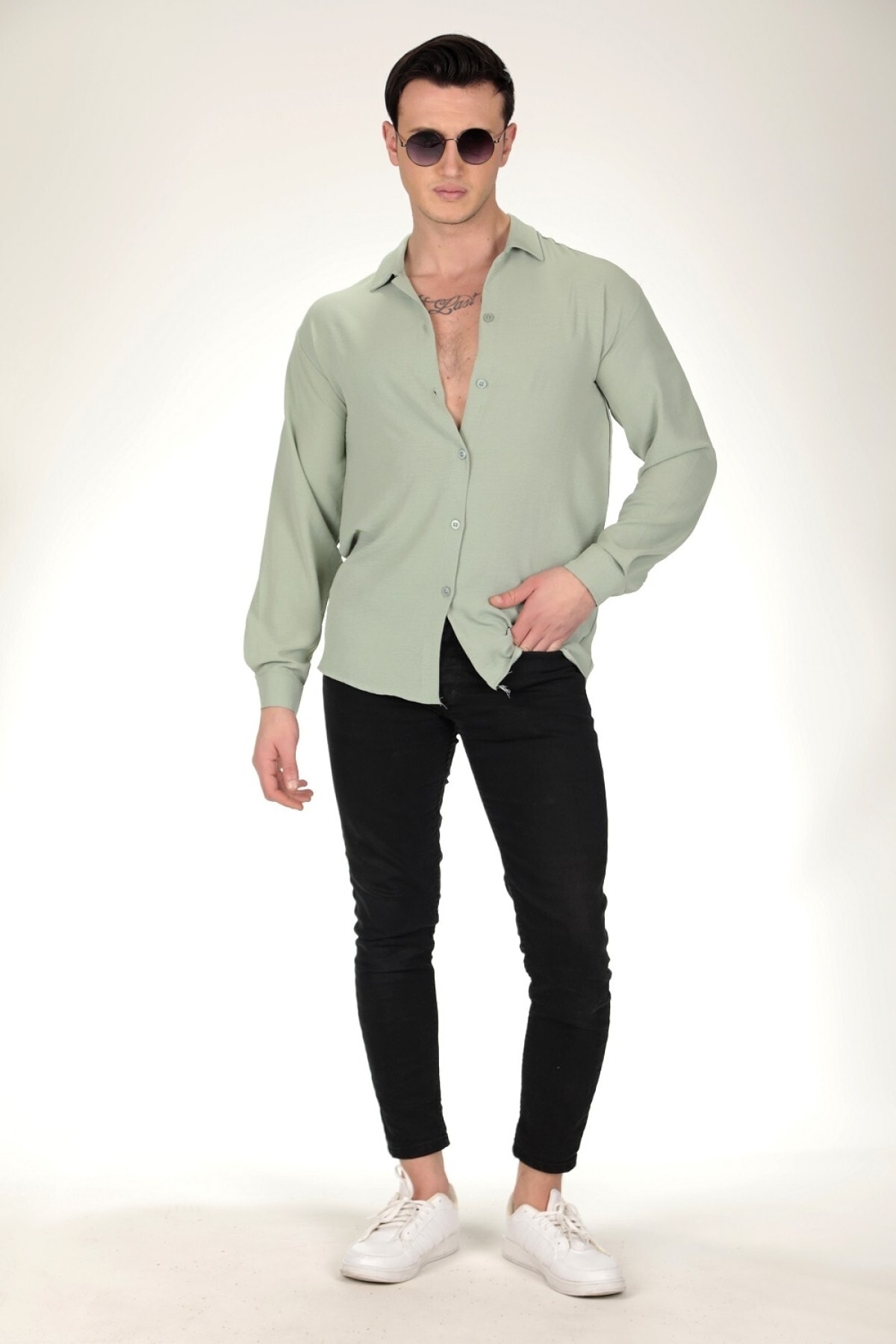 Erkek Dokulu Aerobin Keten Oversize Gömlek Erkek Dokulu Aerobin Keten Oversize Gömlek gamarog XL