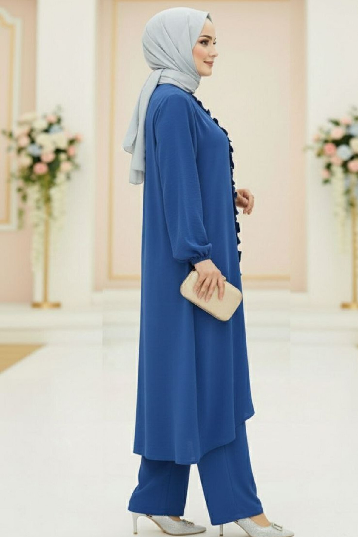 FIRFIR TAKIM İndigo Fırfır Detaylı Tesettür Takım Aerobin Kumaş Taş İşlemeli FIRFIR TAKIM İndigo Fırfır Detaylı Tesettür Takım Aerobin Kumaş Taş İşlemeli 21/9990 60