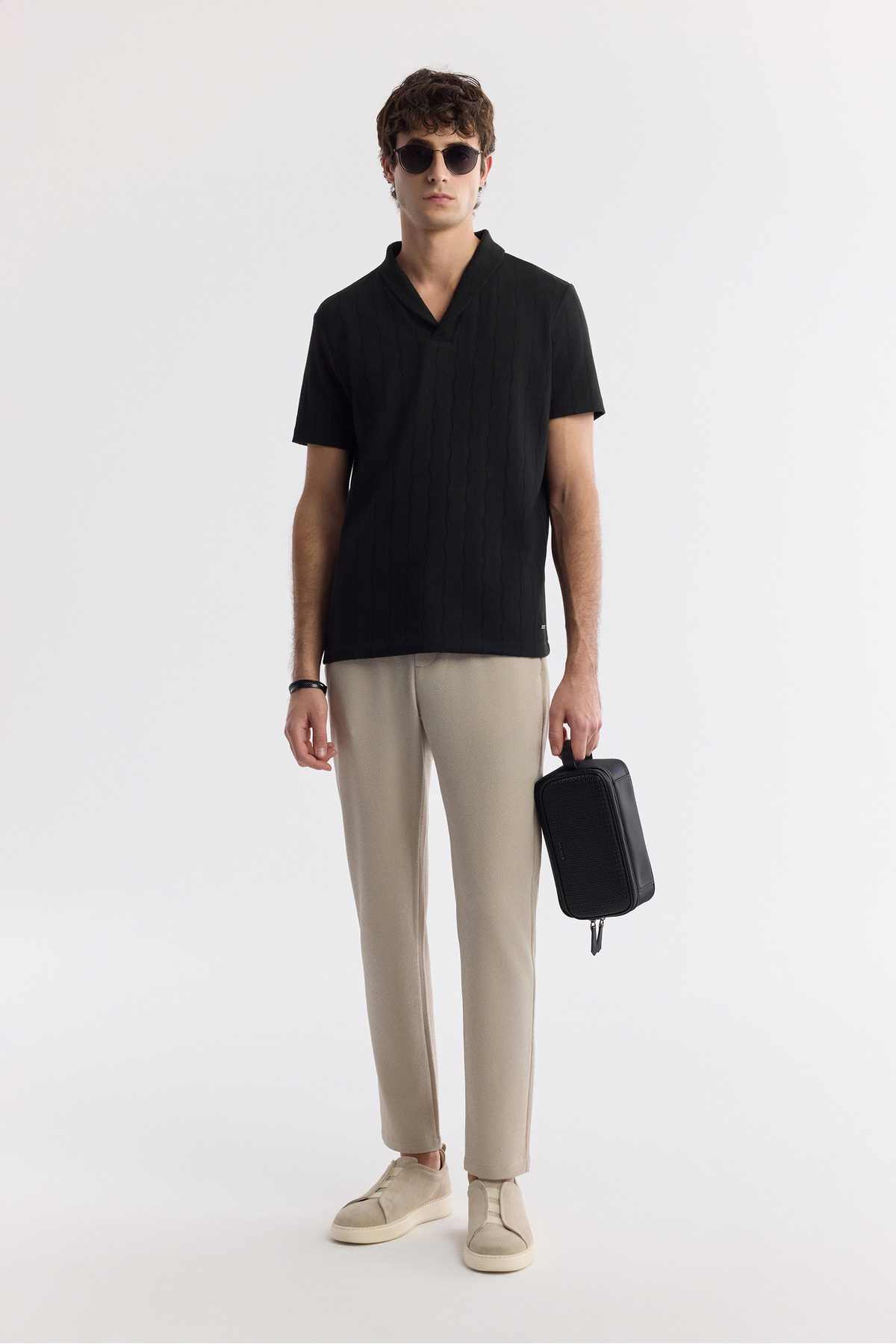 Erkek Siyah Şal Yaka Viskon Karışımlı Jakarlı T-Shirt A51Y1071 Erkek Siyah Şal Yaka Viskon Karışımlı Jakarlı T-Shirt A51Y1071 2XL