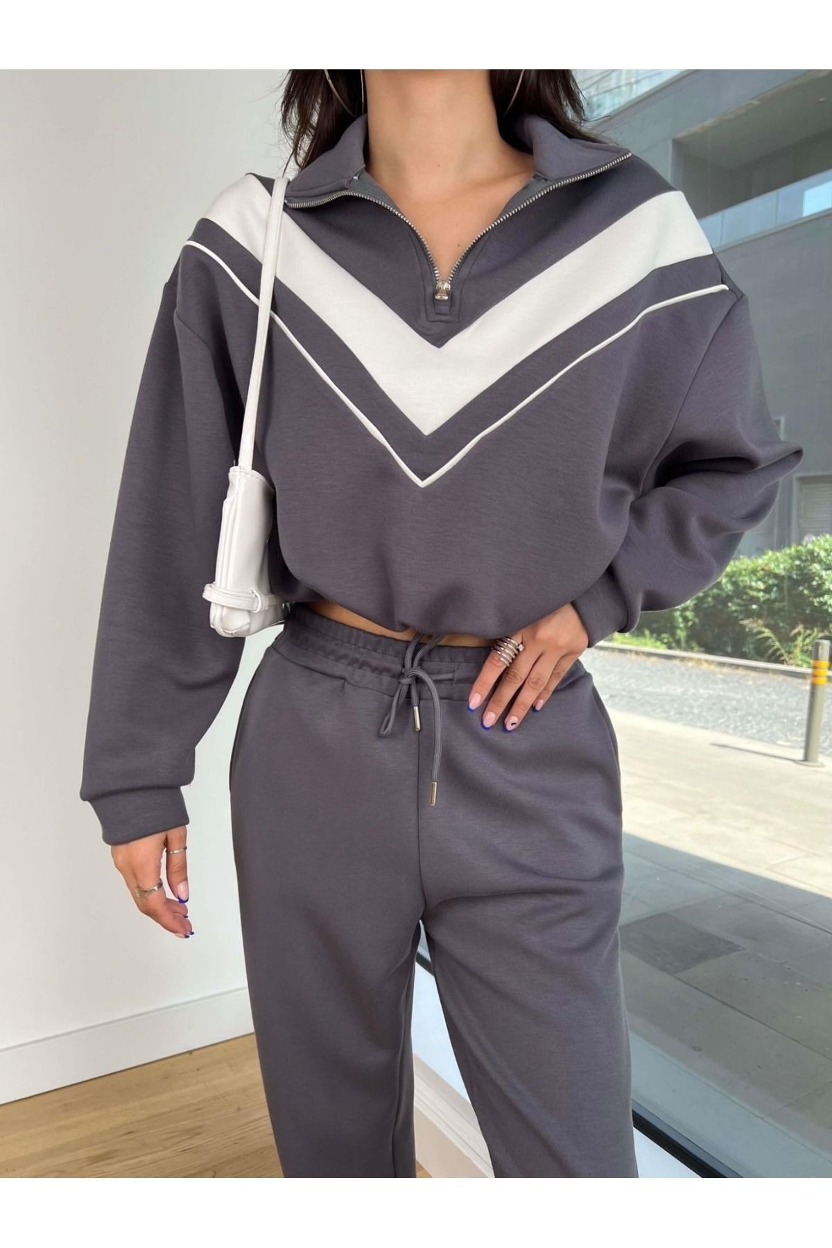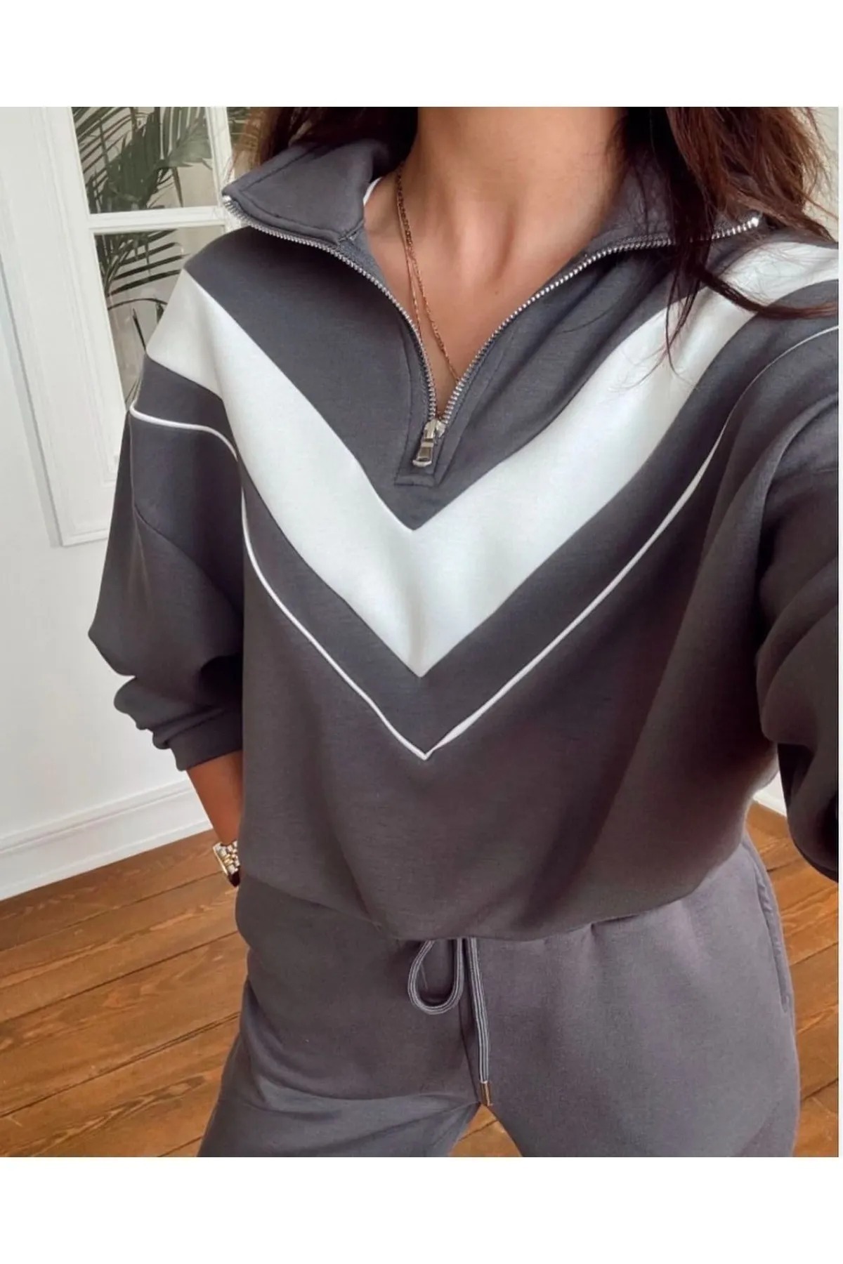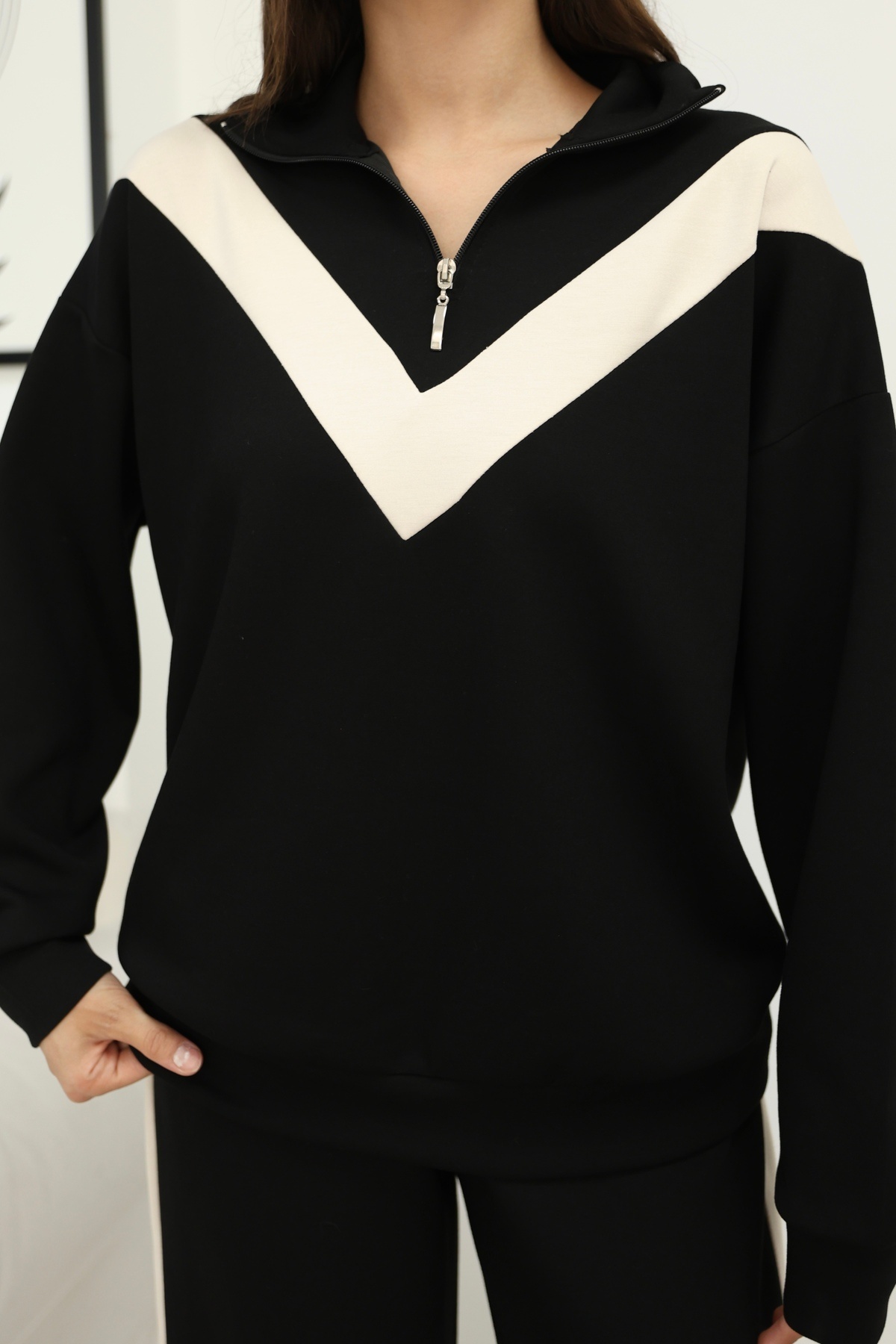 Dik Yaka yarım fermarlı garnili Modal kumaş Takım Dik Yaka yarım fermarlı garnili Modal kumaş Takım SERYR8Y5T2GH52Y25523 XL