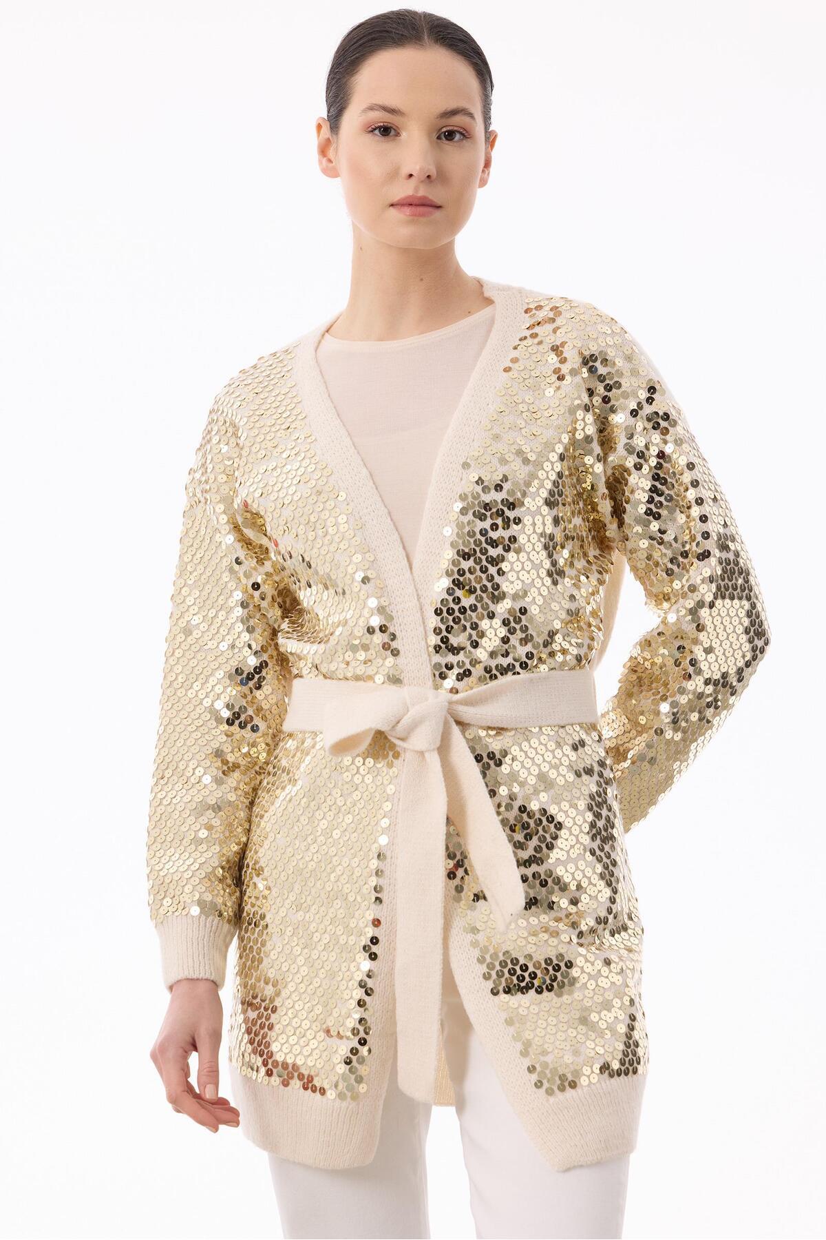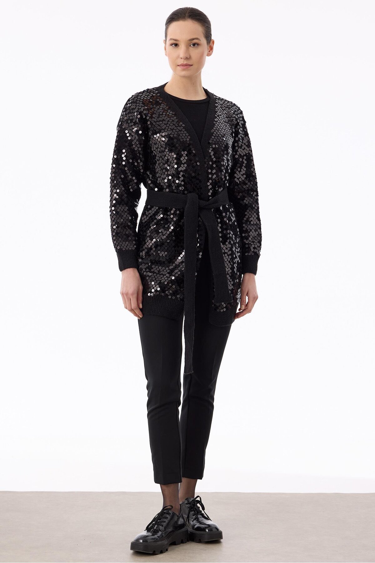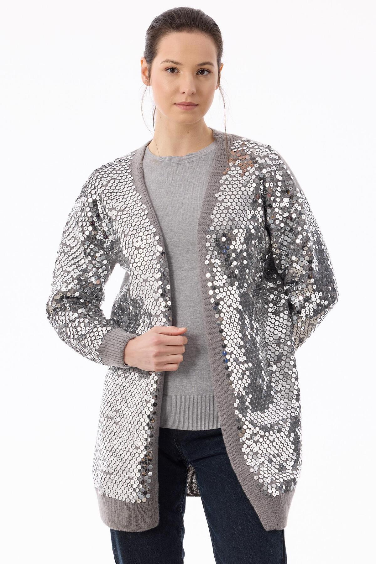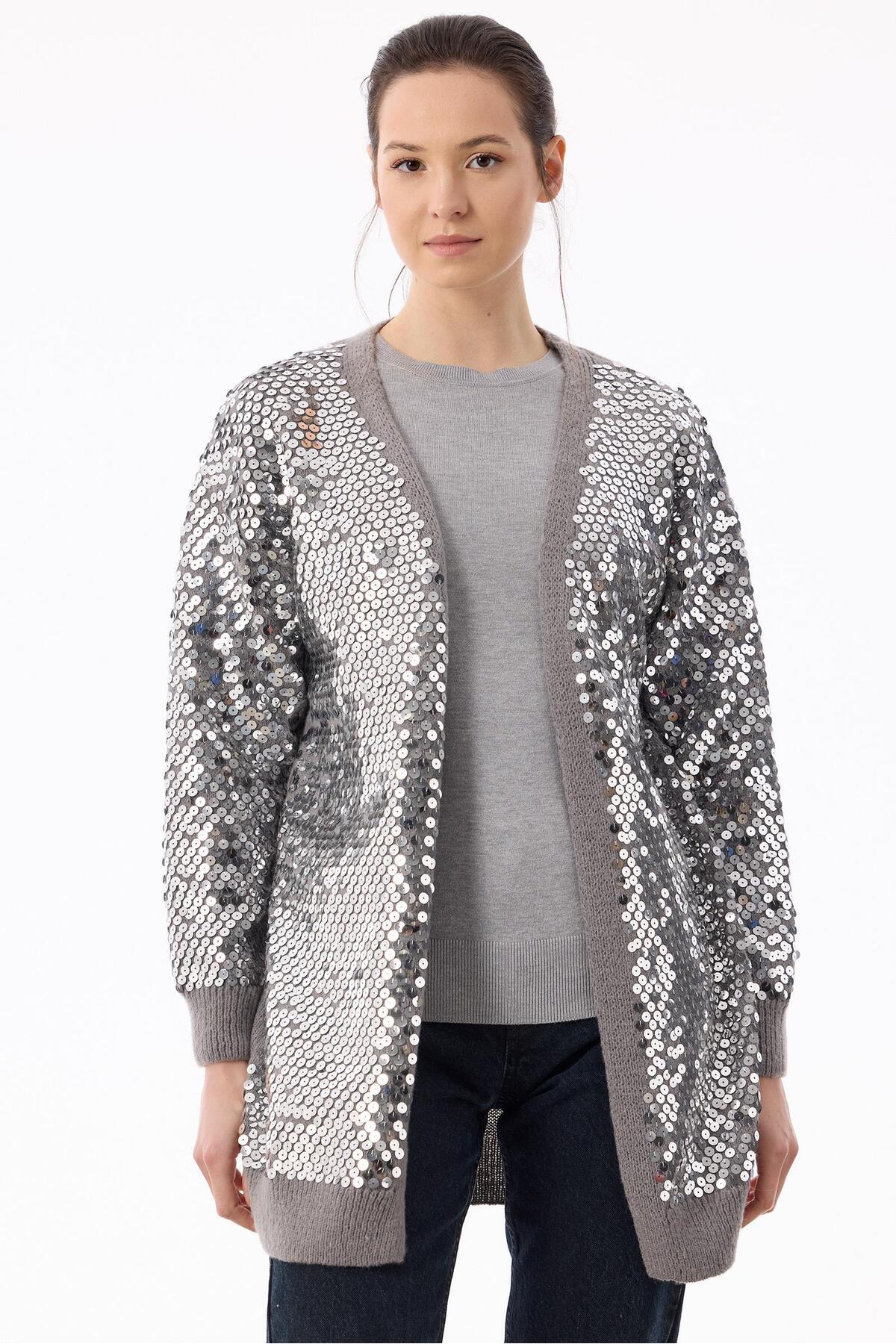 Payetli Triko Hırka GRİ-GRİ Payetli Triko Hırka GRİ-GRİ HRK.21774.1 تک سایز
