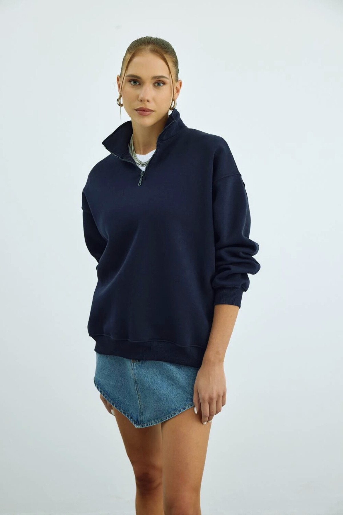 Kadın Dik Yaka Yarım Fermuarlı 3 İplik İçi Polarlı Sweatshirt Kadın Dik Yaka Yarım Fermuarlı 3 İplik İçi Polarlı Sweatshirt YKMLFDKY-1 XL