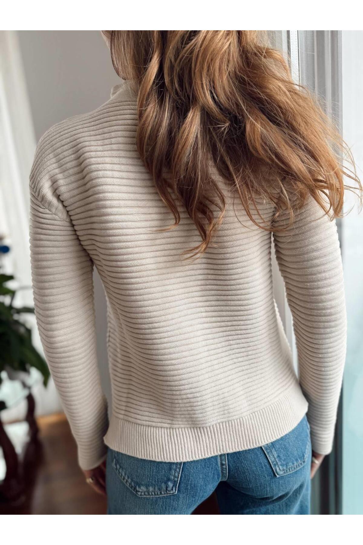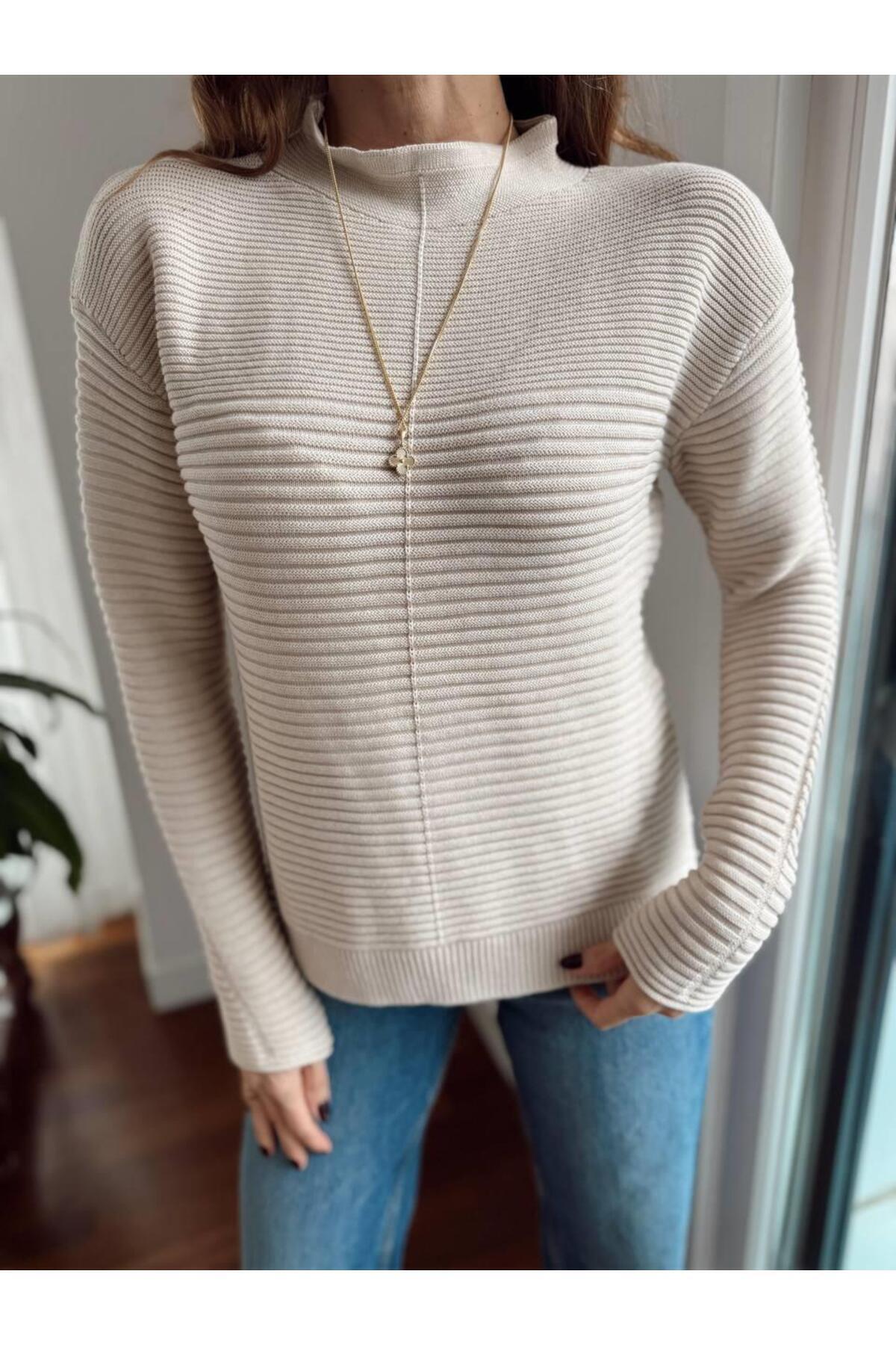 Kadın Akordiyon Dik Yaka Bej Triko Kazak Kadın Akordiyon Dik Yaka Bej Triko Kazak 25KT6208 XL